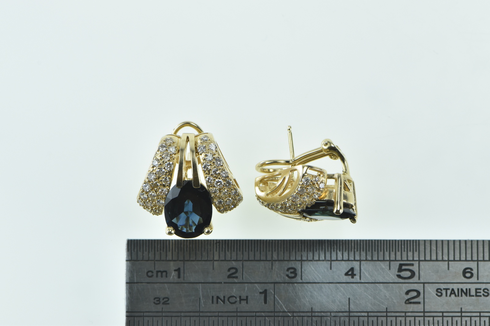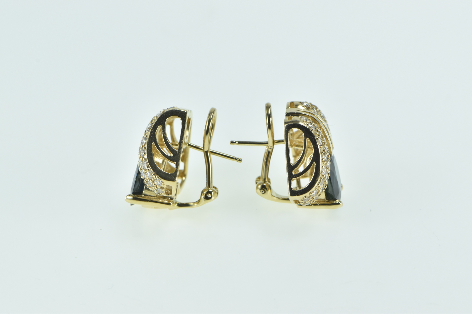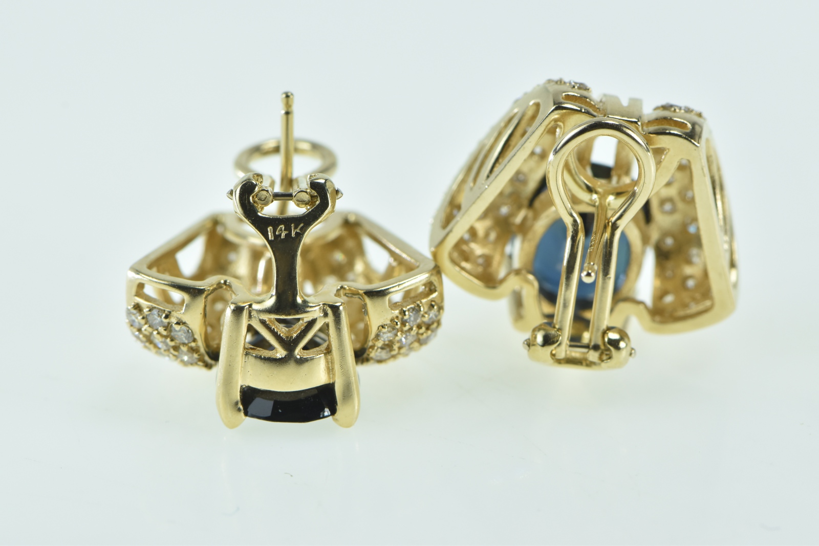 Item:  14K 7.75 Ctw Sapphire Pave Diamond French Clip Yellow Gold Earrings