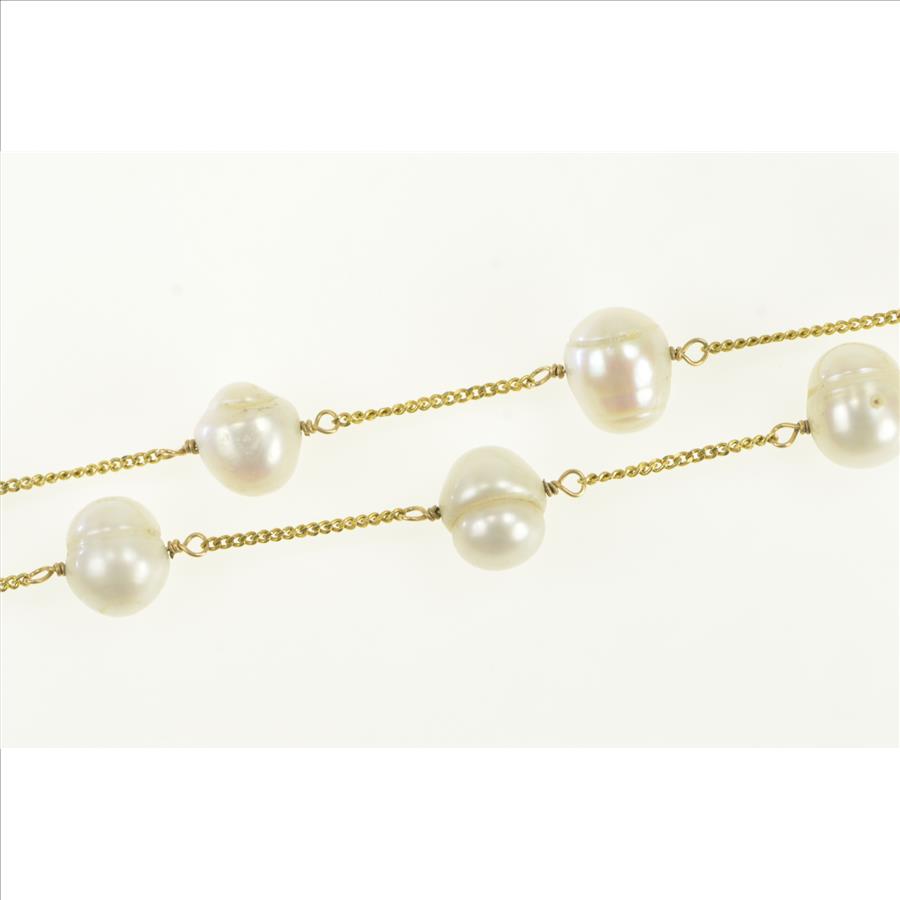 14K 8.7mm Pearl Vintage Beaded Chain Yellow Gold Necklace 18.25"