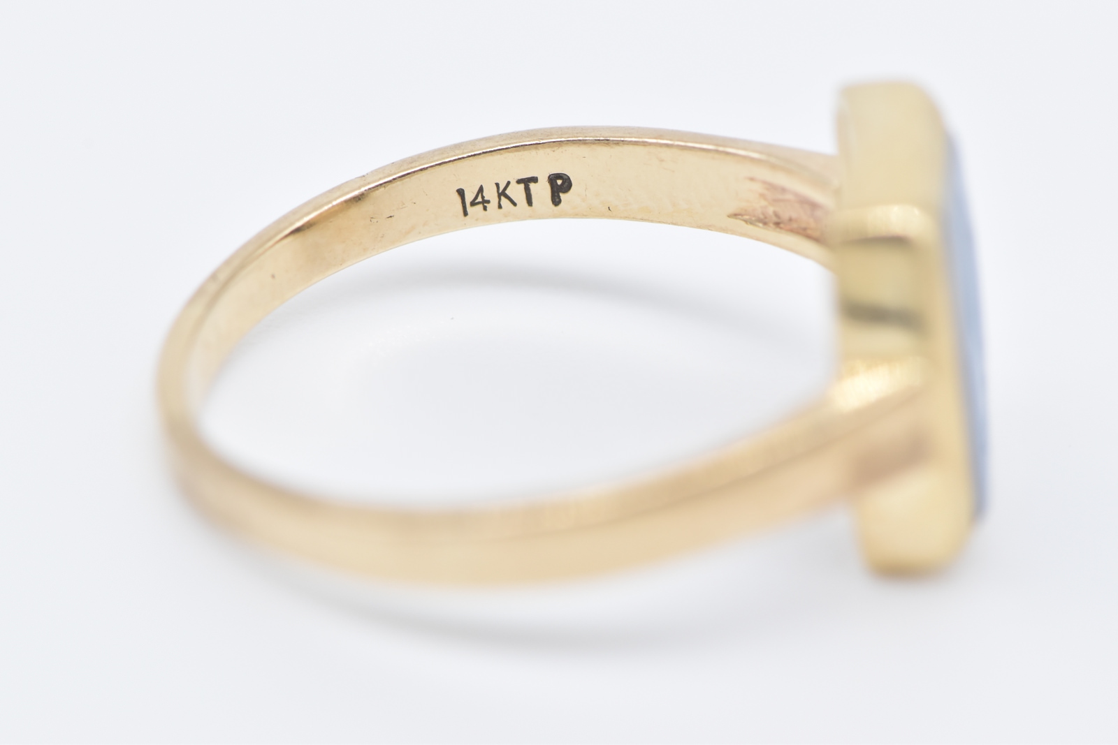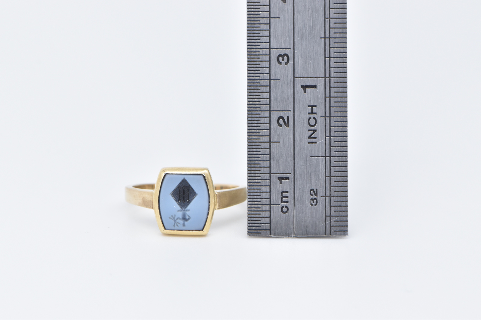 14K Arrow Harvest Carved Agate Signet Wax Seal Yellow Gold Ring, Size 7