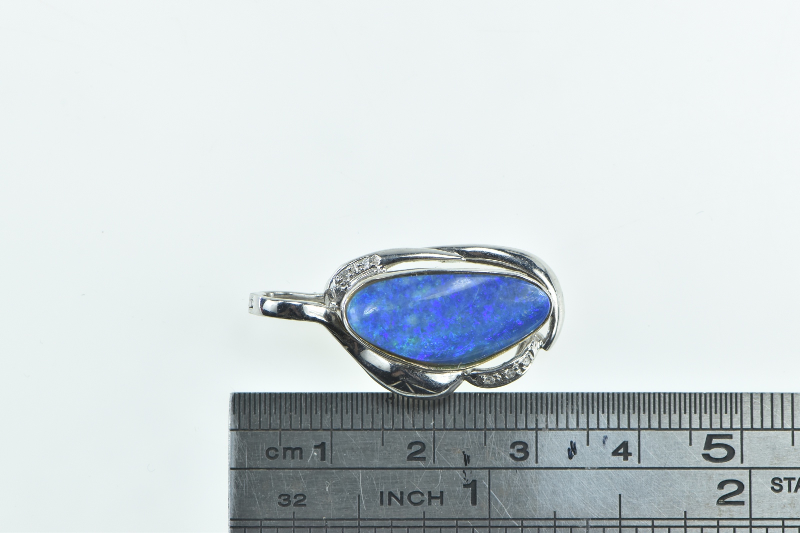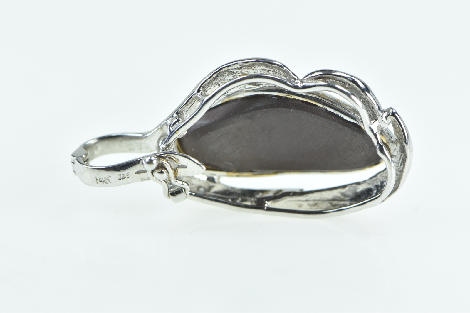 14K Black Opal Diamond Accent Curvy Statement White Gold Pendant