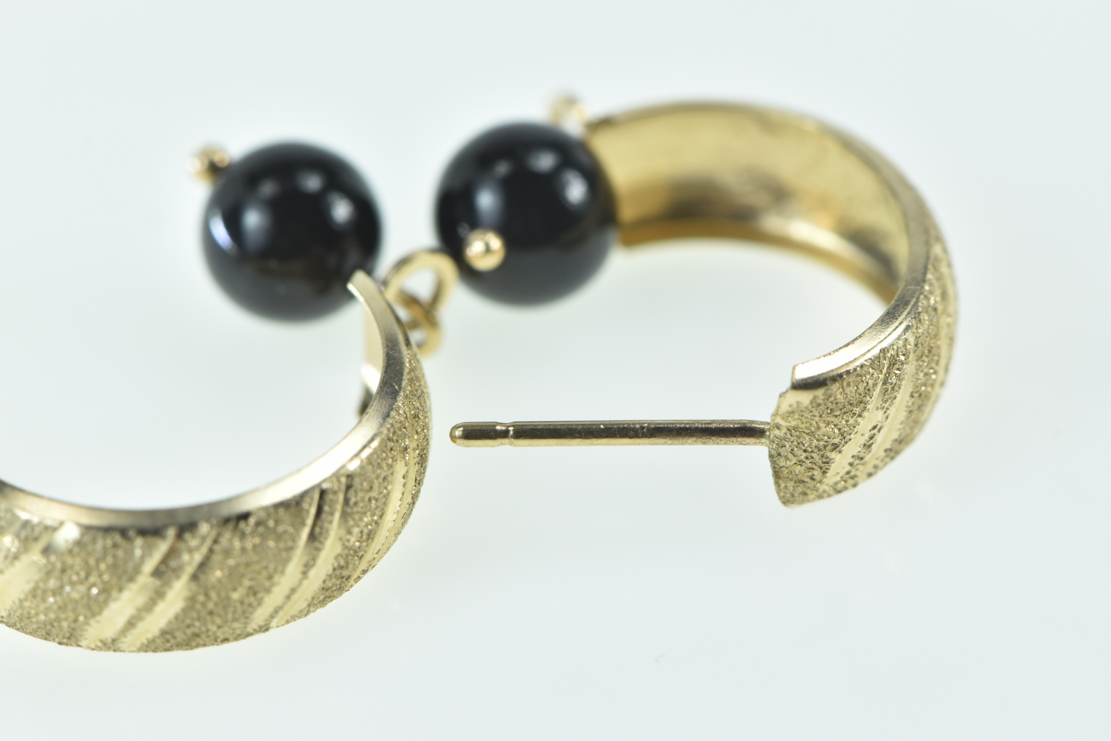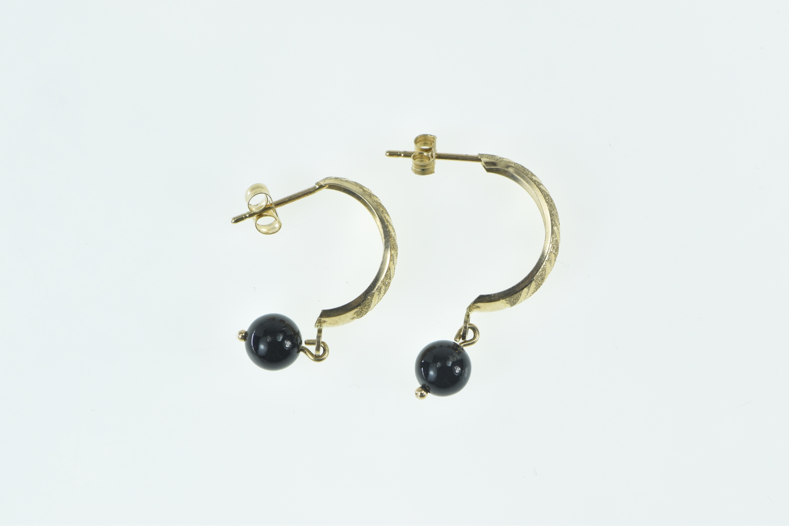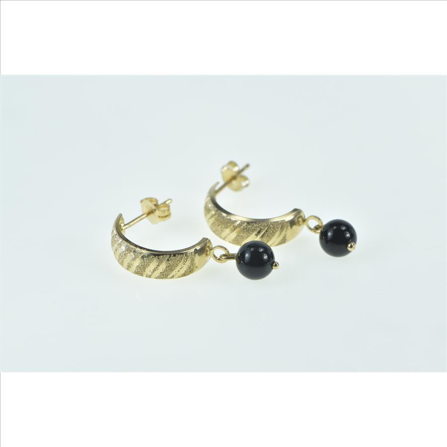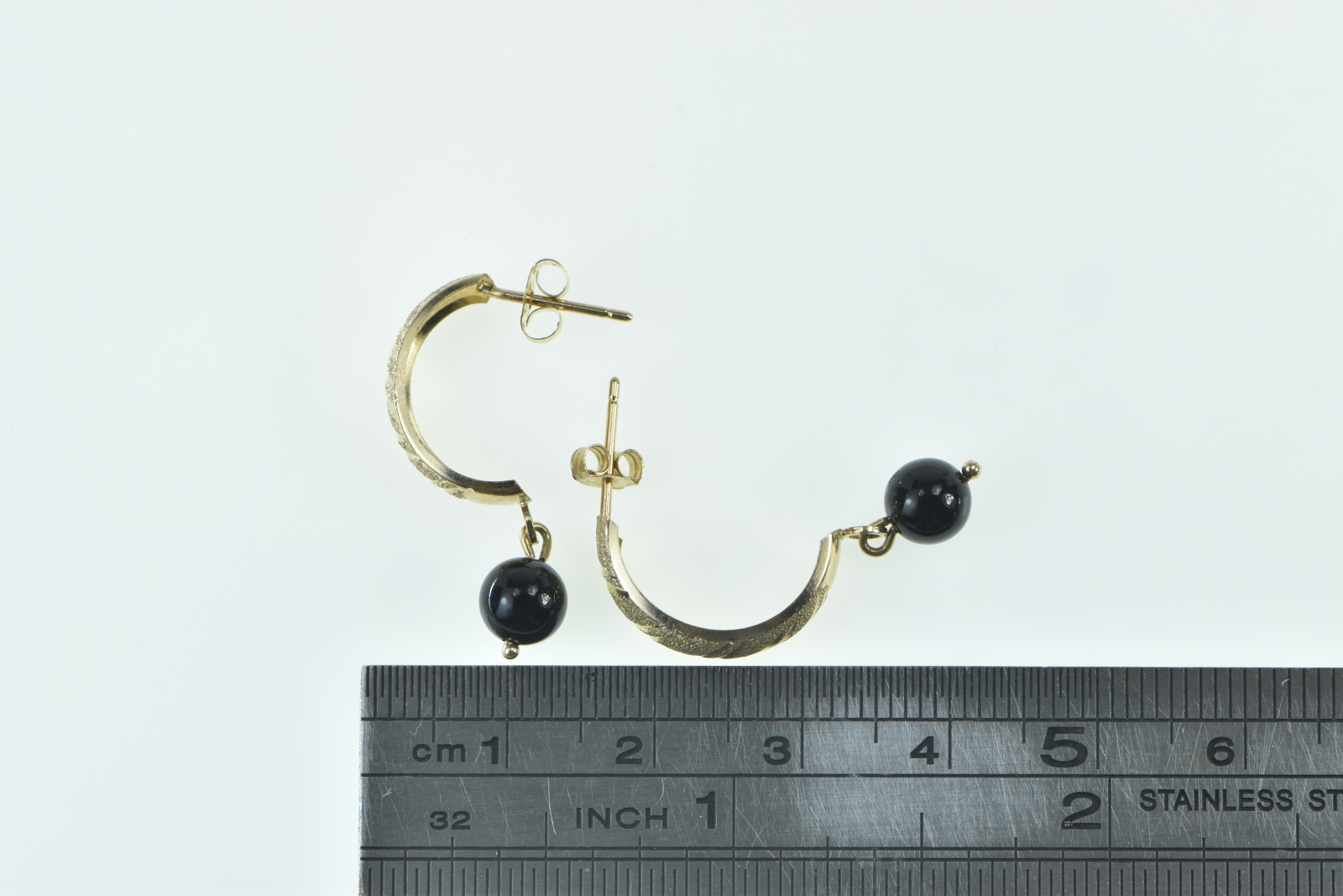Item:  14K Black Sphere Dangle Curved Drop Yellow Gold Earrings