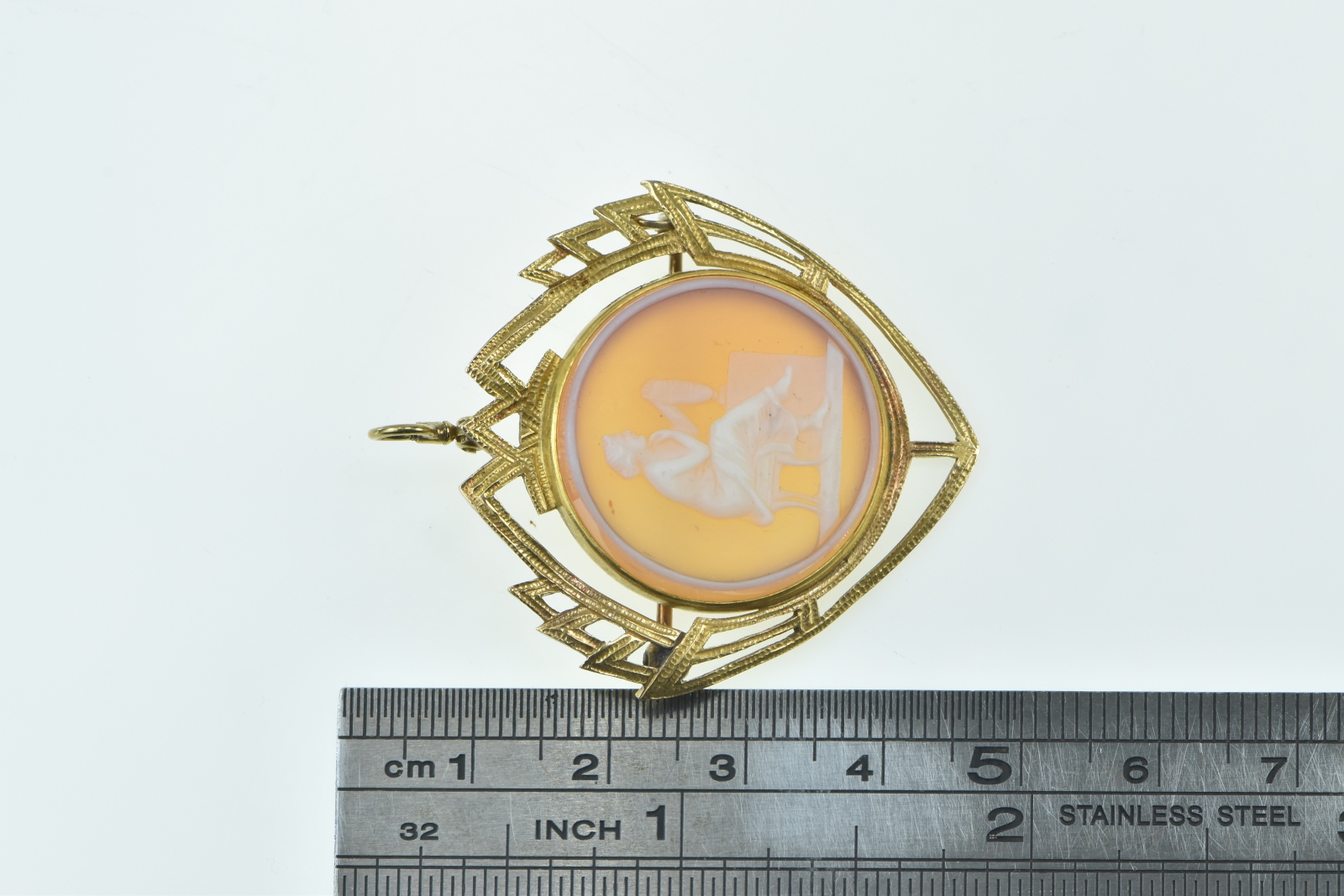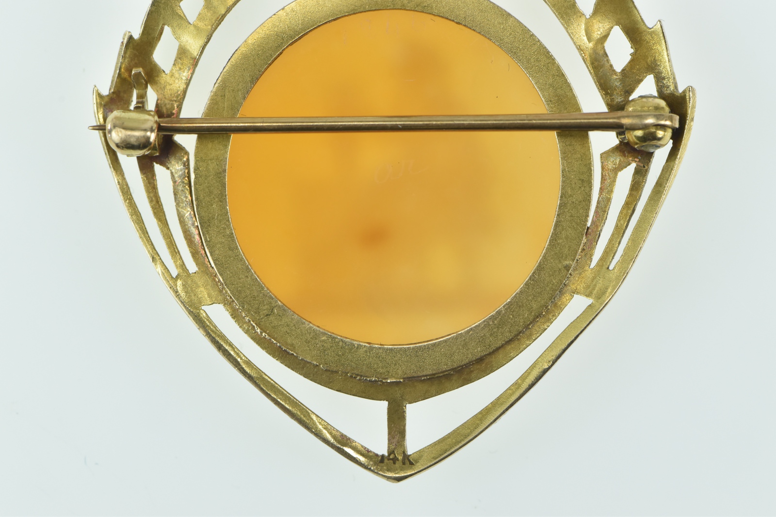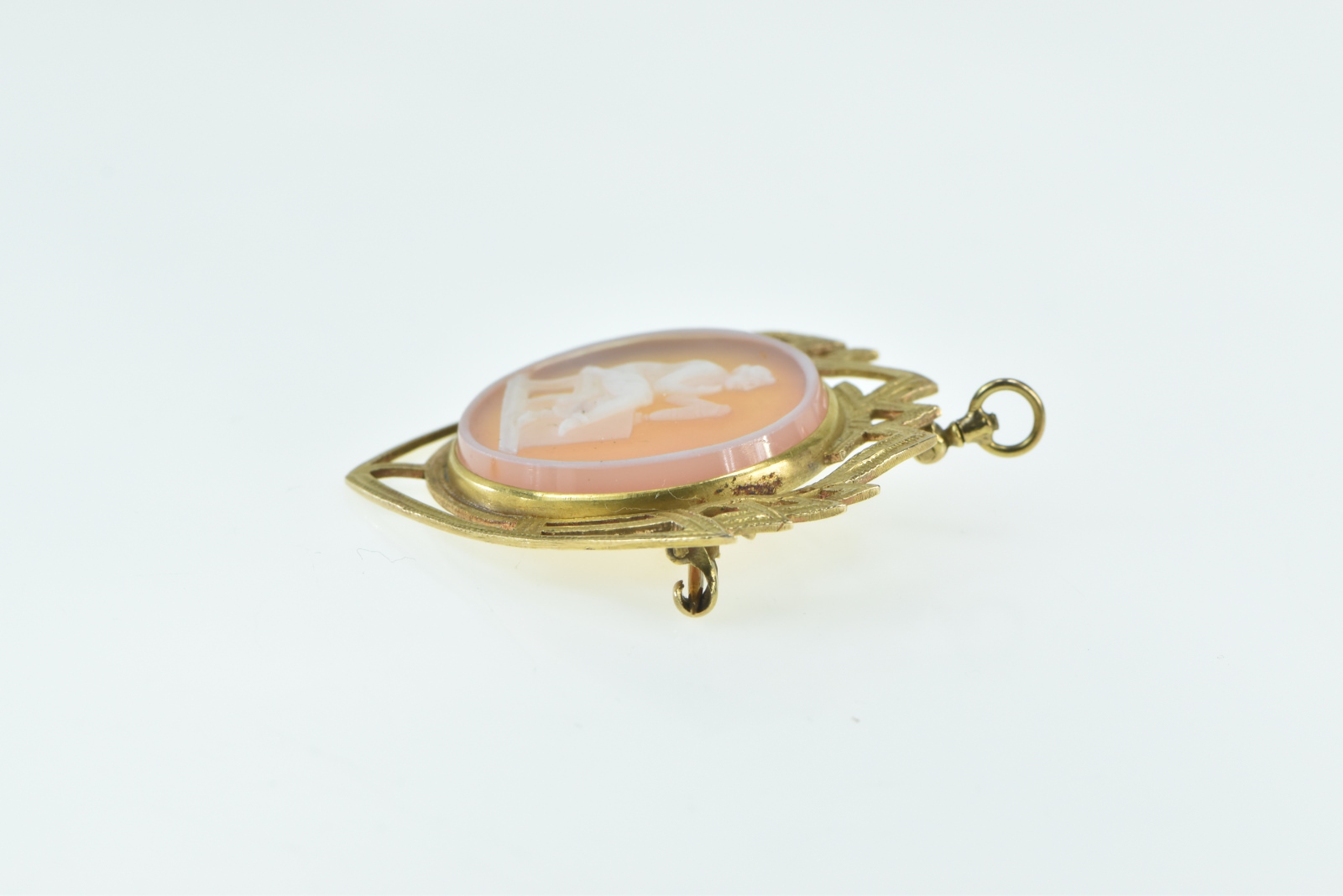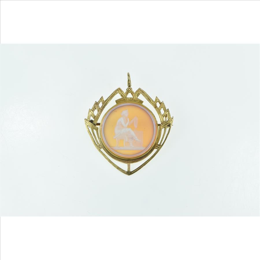 Item:  14K Carved Seated Lady Agate Cameo Yellow Gold Pendant/Pin