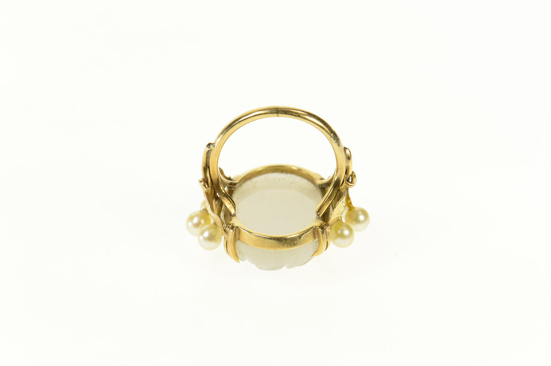 Item:  14K Carved Swirl Quartz Retro Pearl Accent Yellow Gold Ring, Size 3.5