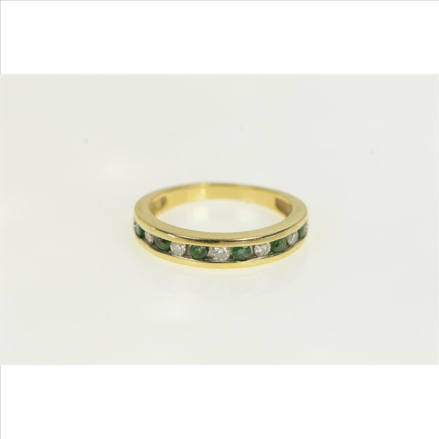 14K Diamond Emerald Vintage Wedding Band Yellow Gold Ring, Size 7