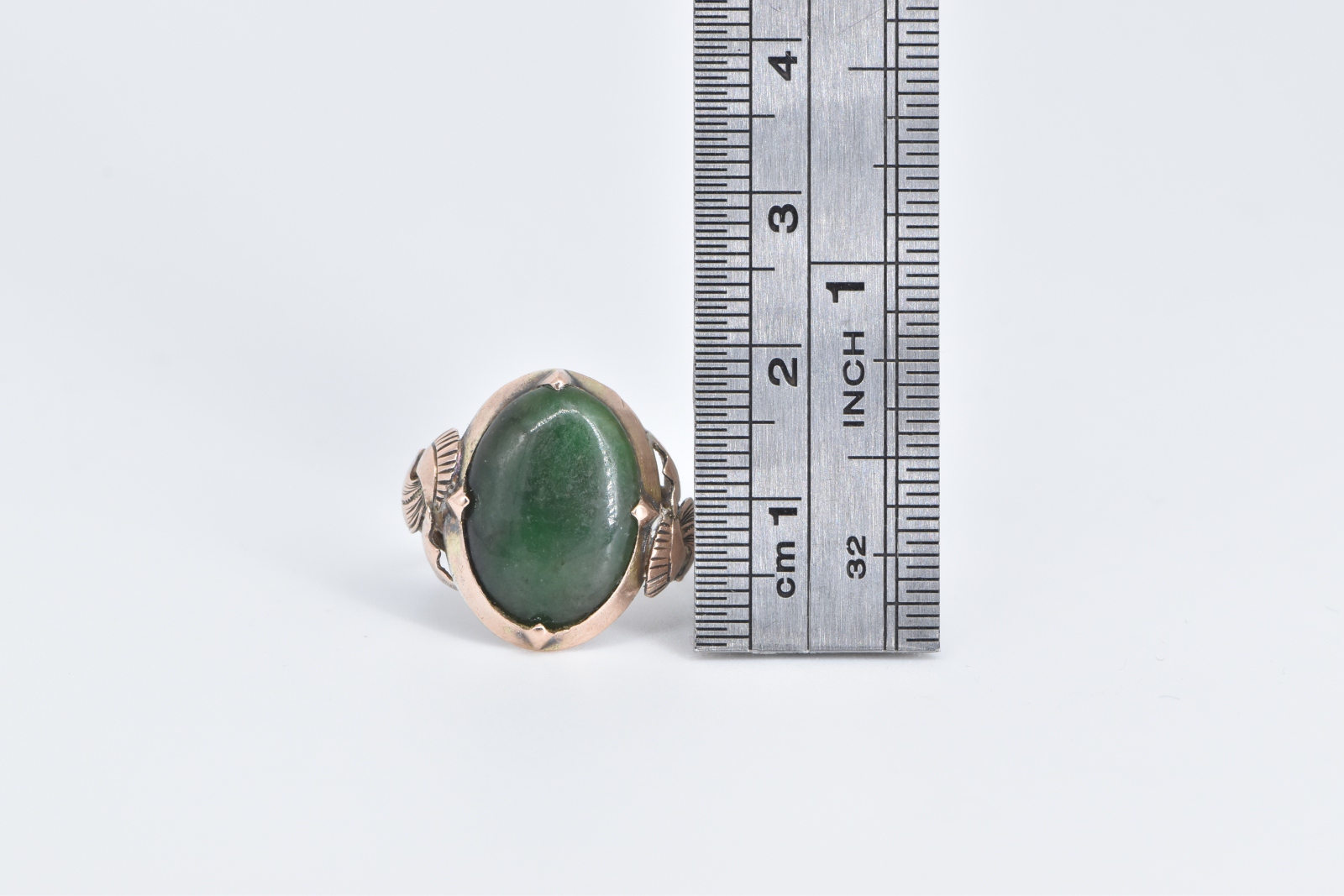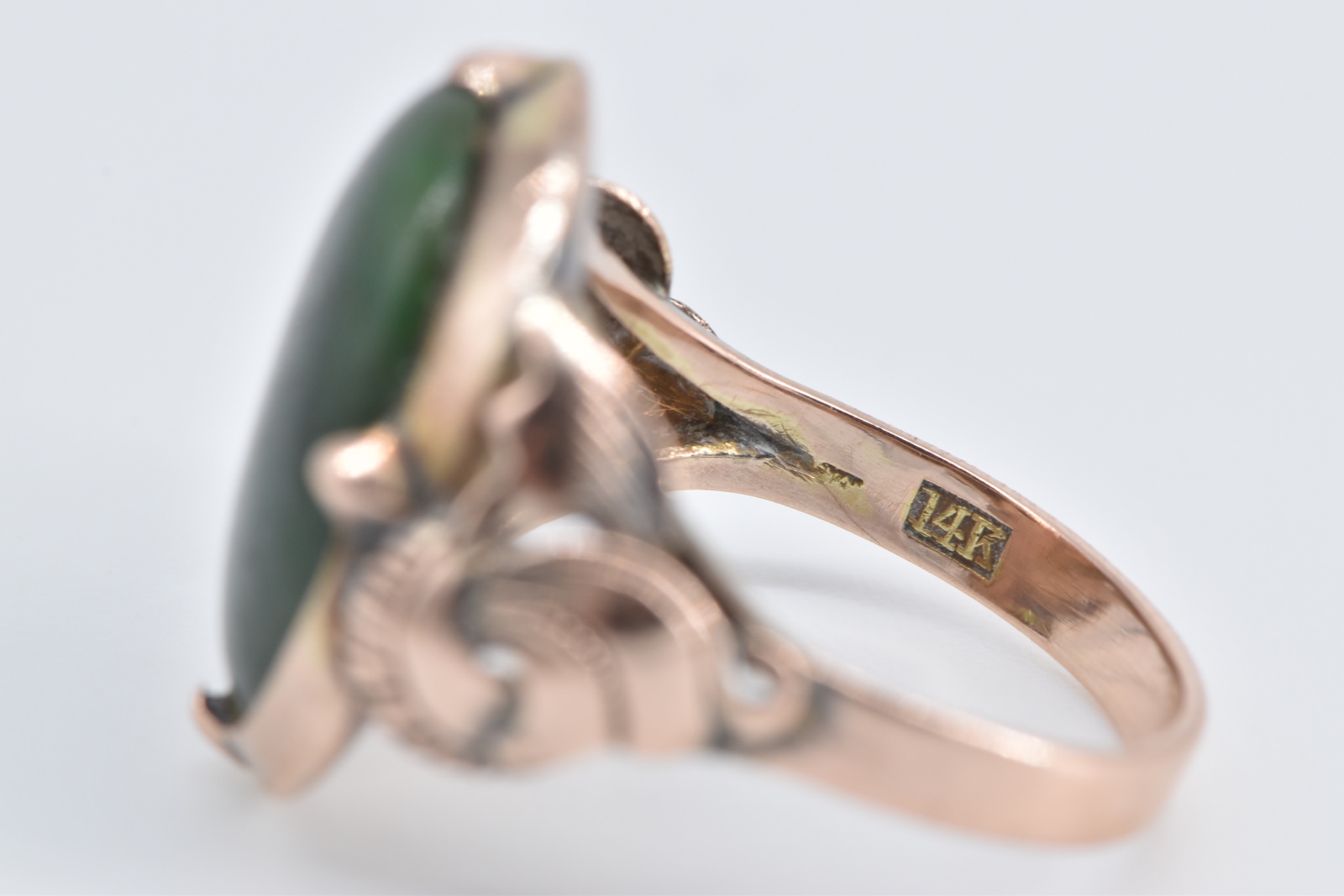 14K Egyptian Revival Ornate Green Stone Swirl Rose Gold Ring, Size 5.5