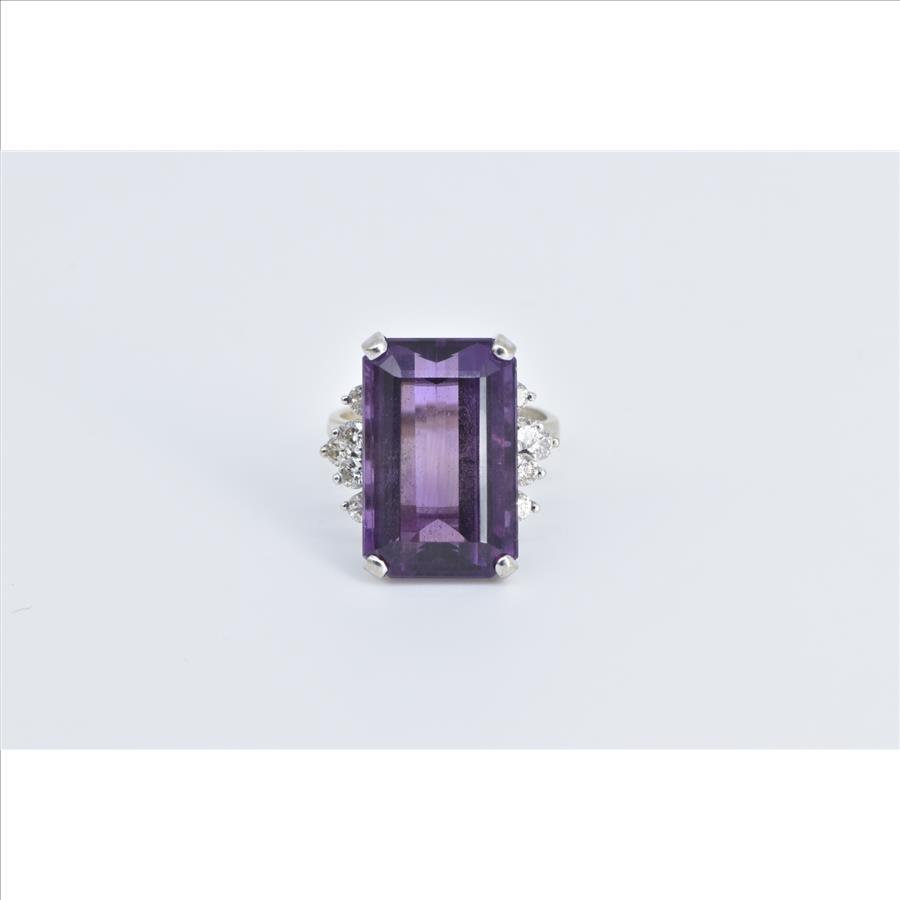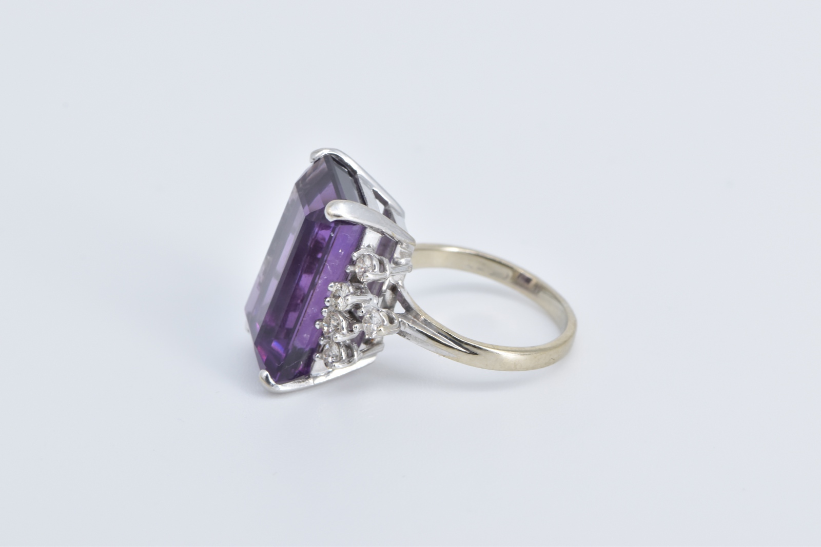 Item:  14K Emerald Cut Amethyst Diamond Accent Cocktail White Gold Ring, Size 3.75