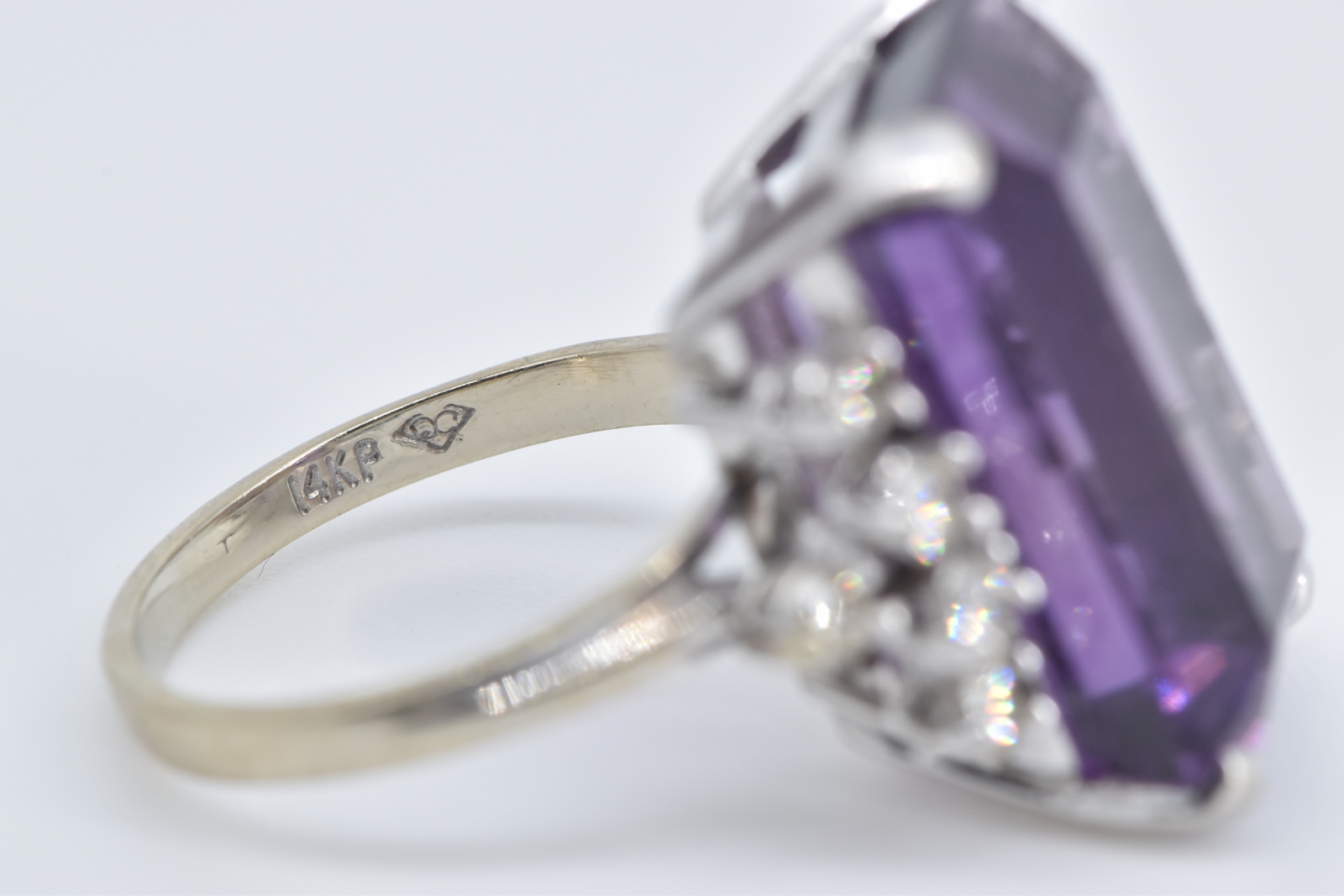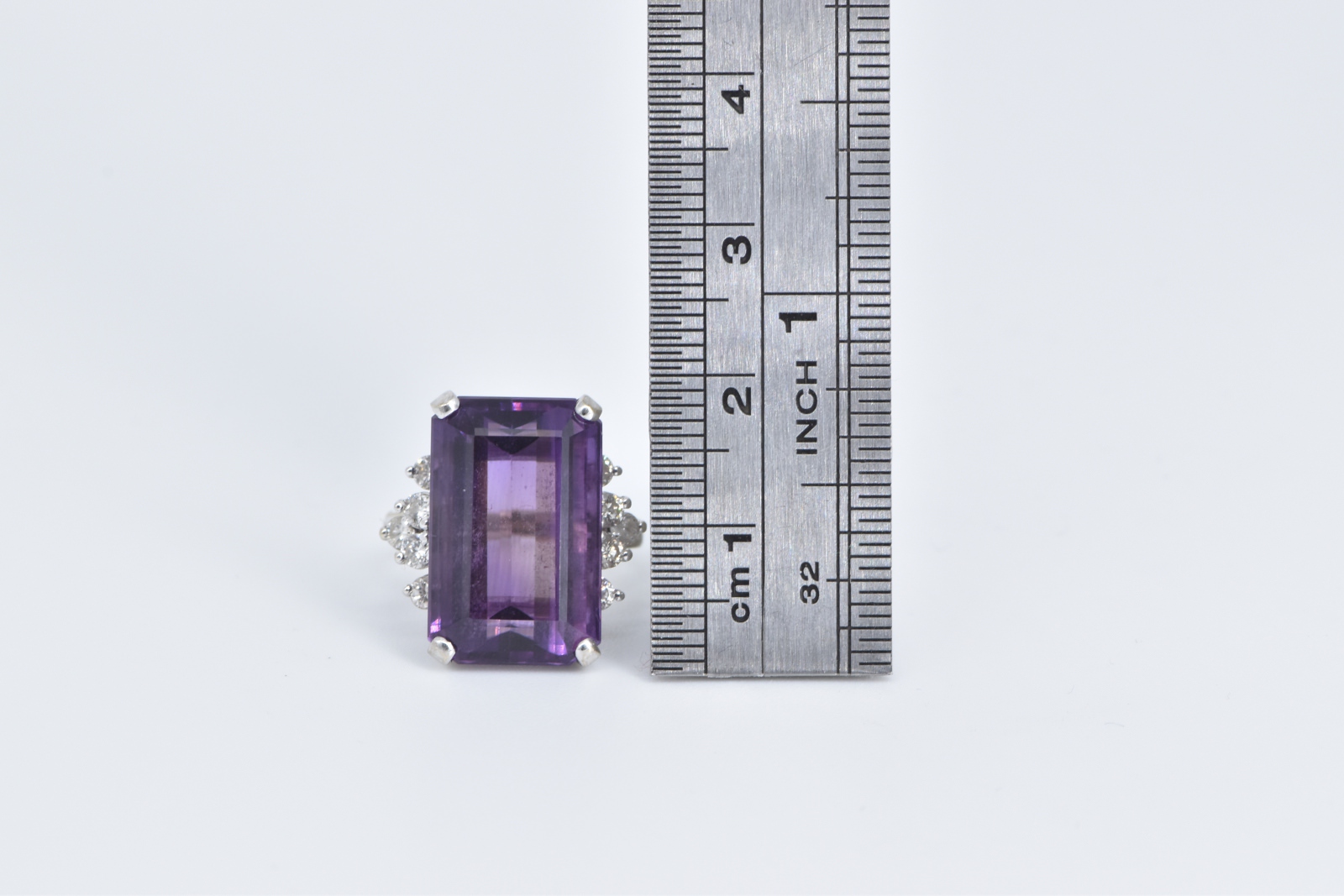 14K Emerald Cut Amethyst Diamond Accent Cocktail White Gold Ring, Size 3.75