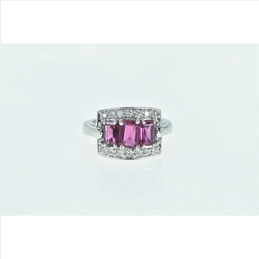 14K Emerald Cut Purple Tourmaline Diamond Halo White Gold Ring, Size 7