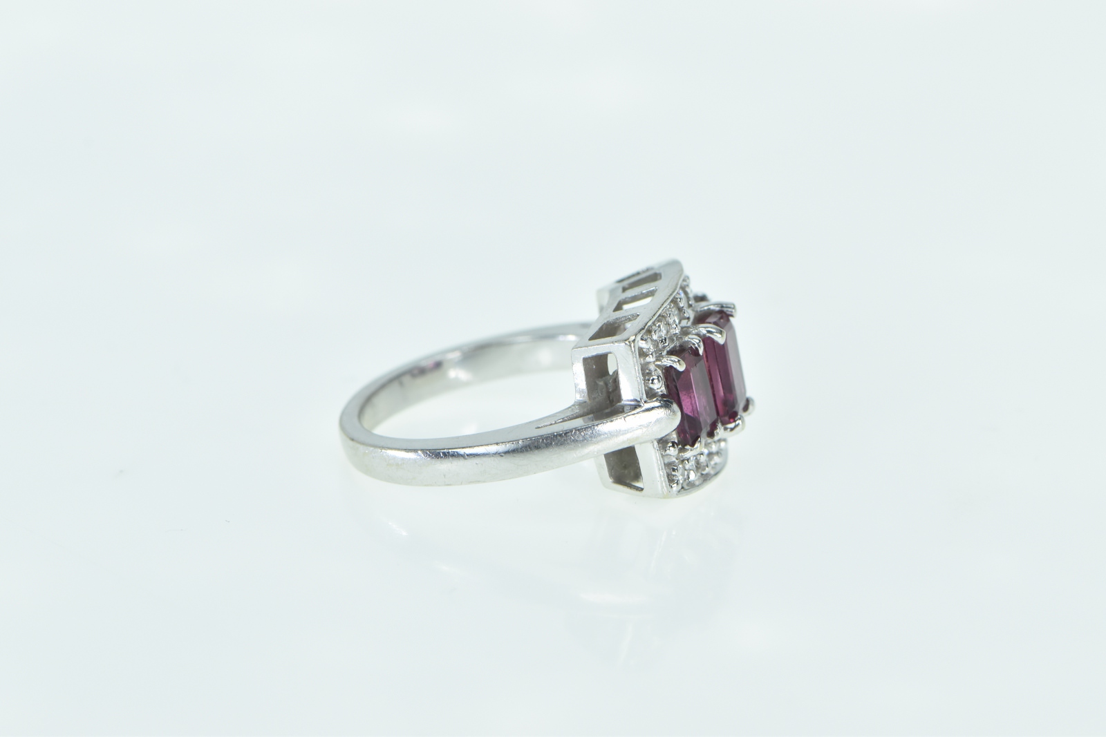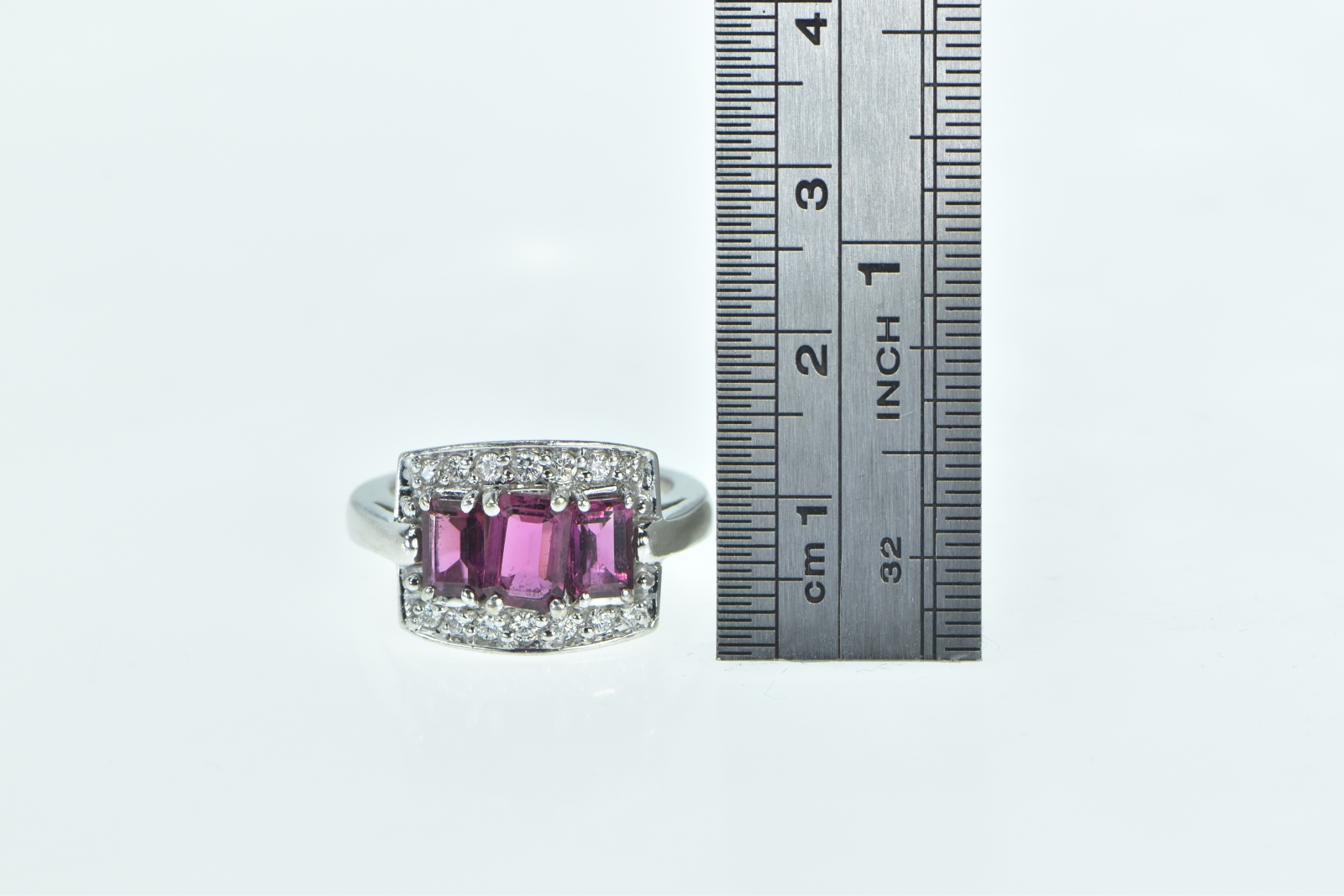 Item:  14K Emerald Cut Purple Tourmaline Diamond Halo White Gold Ring, Size 7