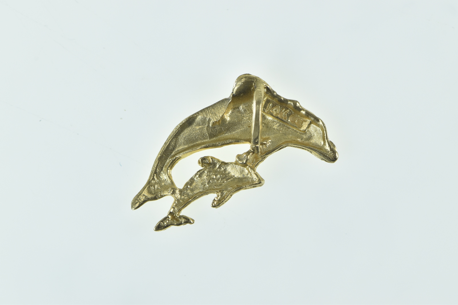 14K Jumping Dolphin Symbol Ocean Animal Yellow Gold Charm/Pendant