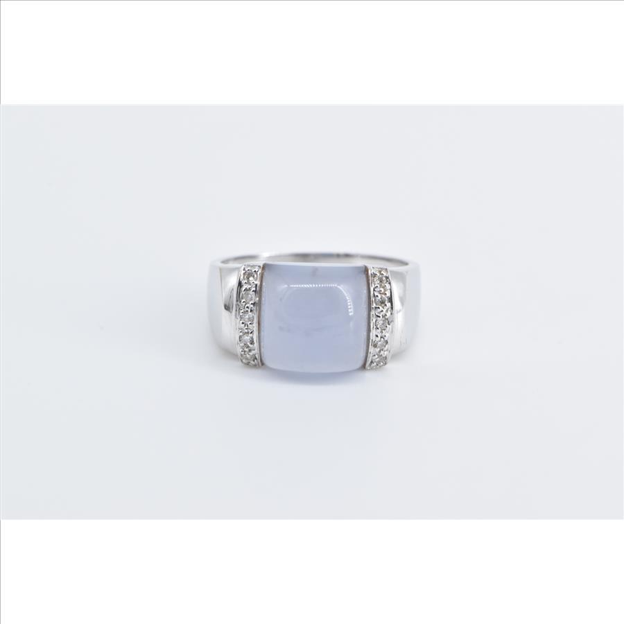 Item:  14K Lilac Jade Diamond Domed Fashion Statement White Gold Ring, Size 6.75