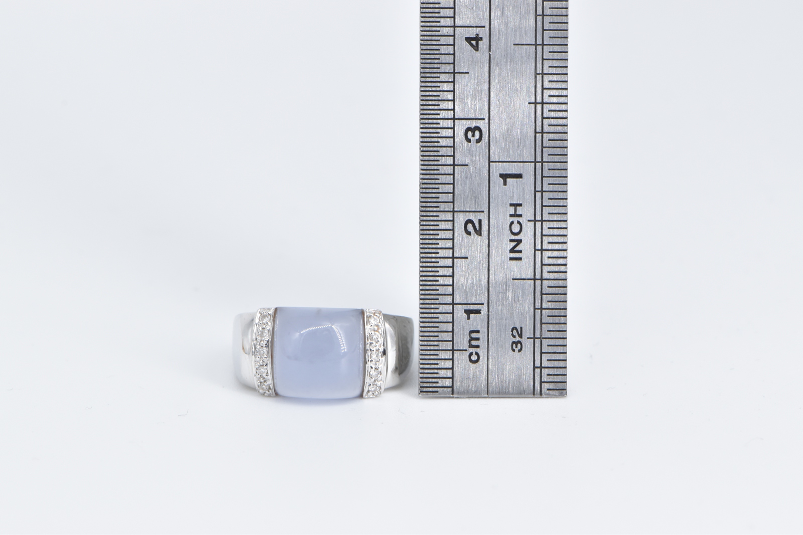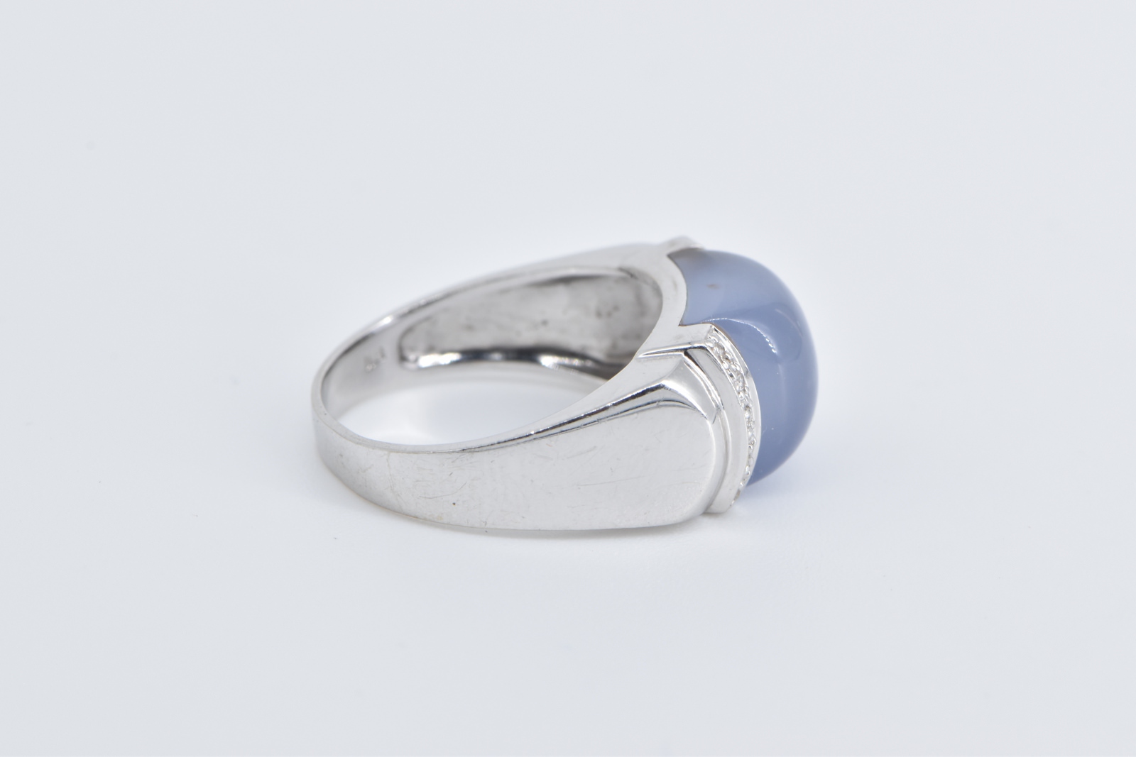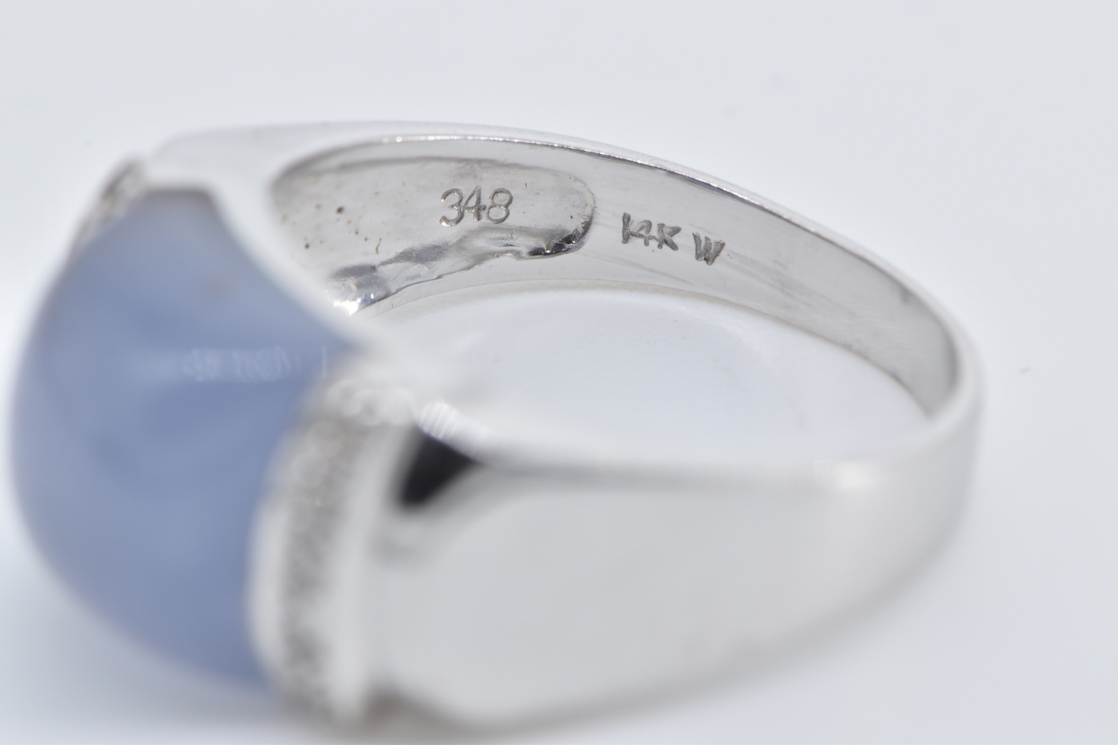 14K Lilac Jade Diamond Domed Fashion Statement White Gold Ring, Size 6.75