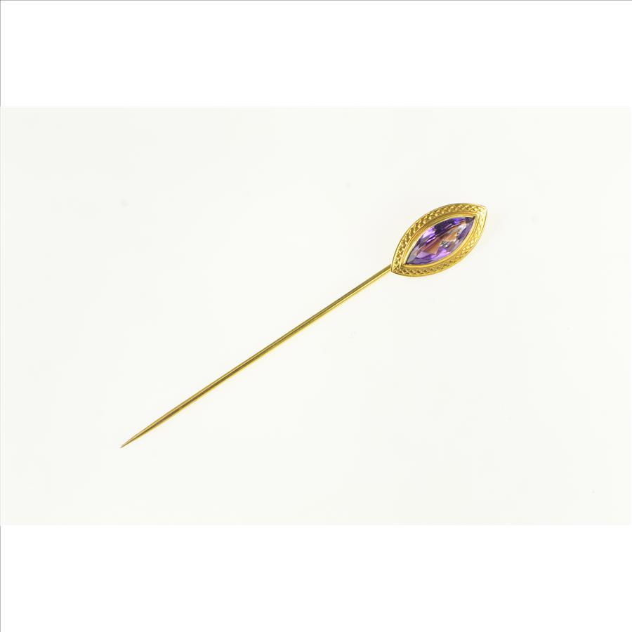 Item:  14K Marquise Amethyst Vintage Statement Yellow Gold Stick Pin