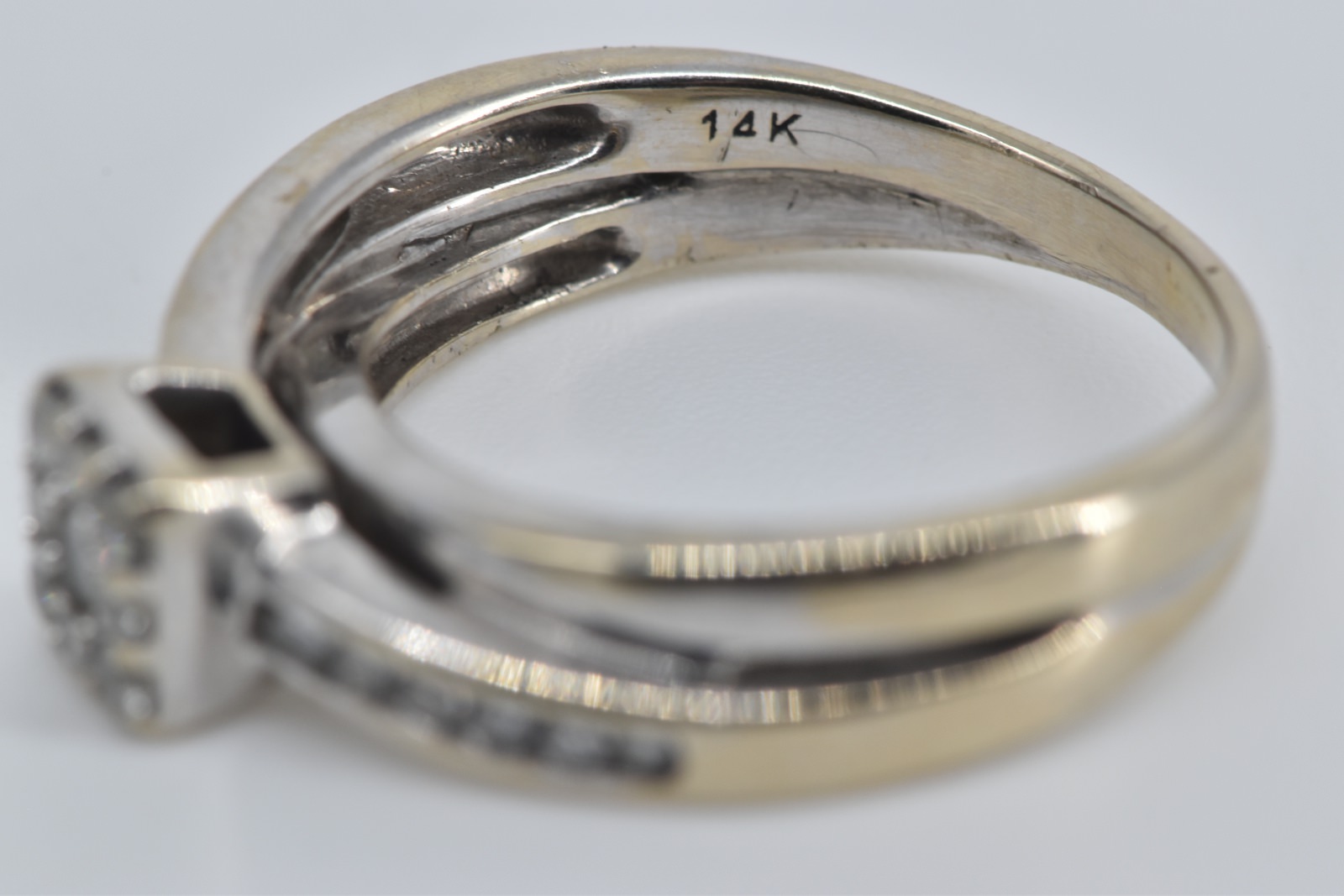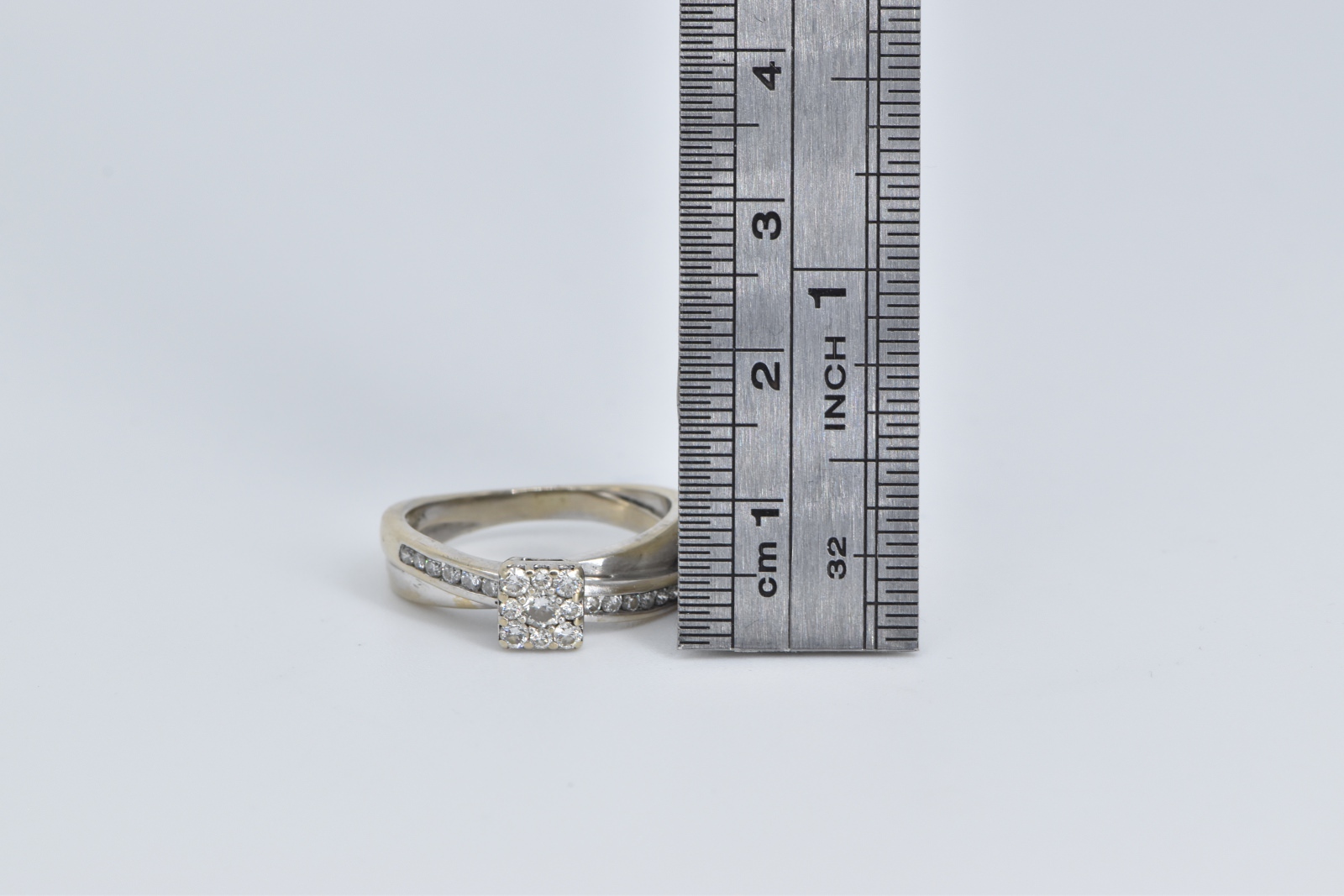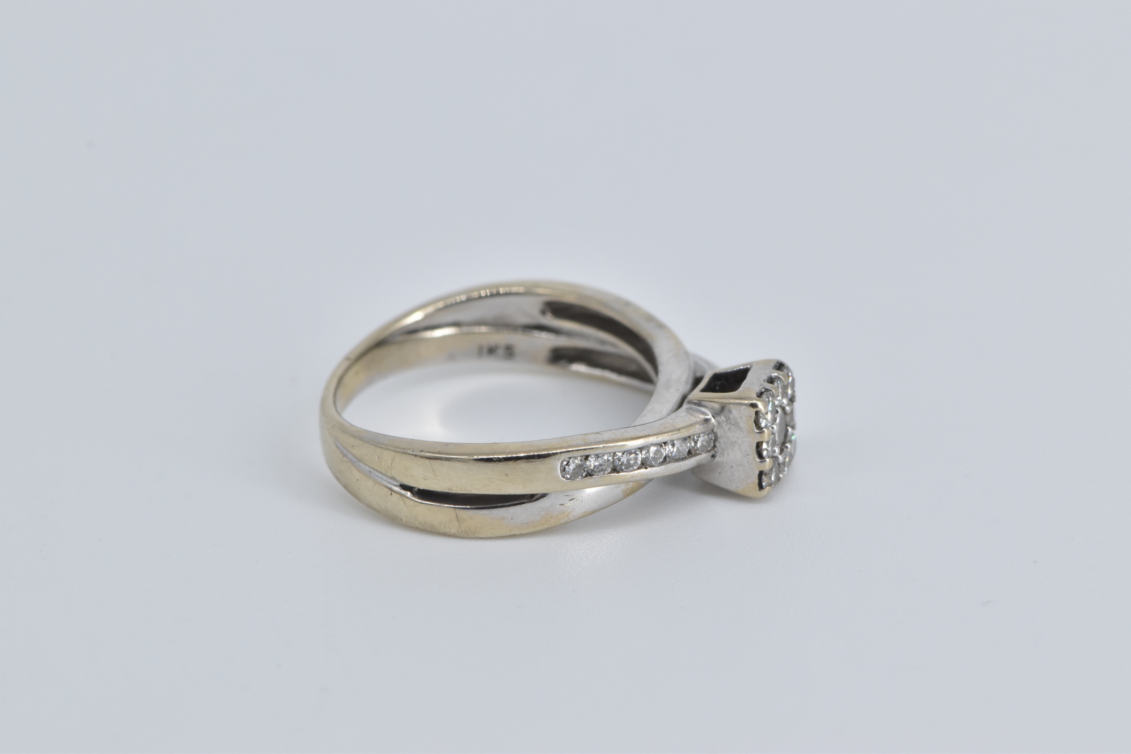 14K Natural Diamond Square Halo Engagement White Gold Ring, Size 7