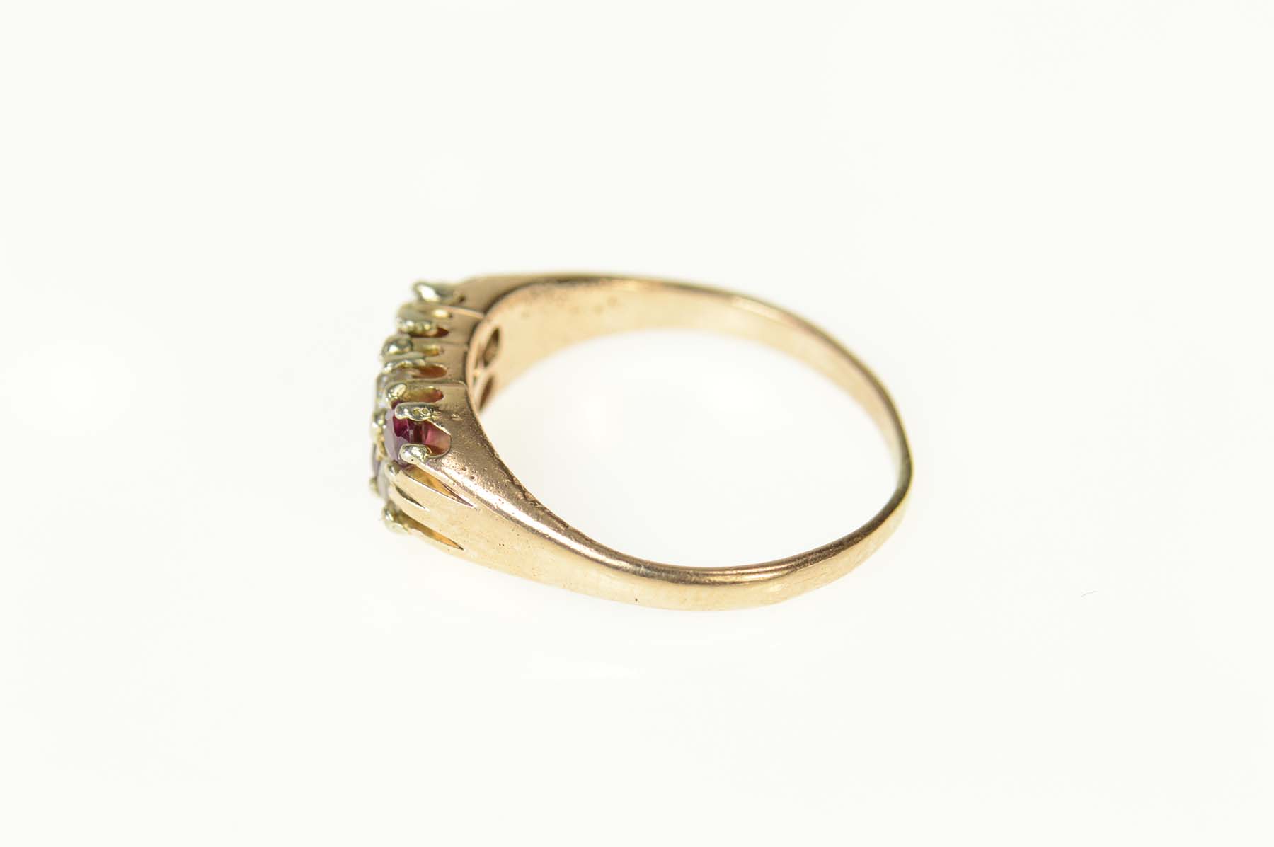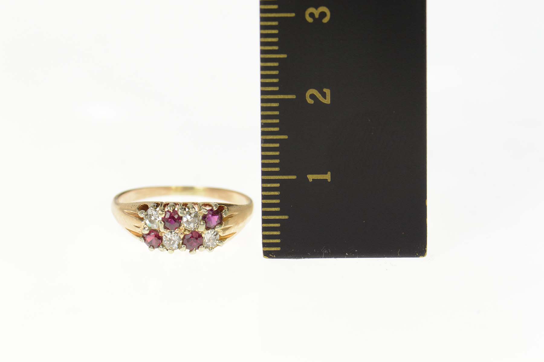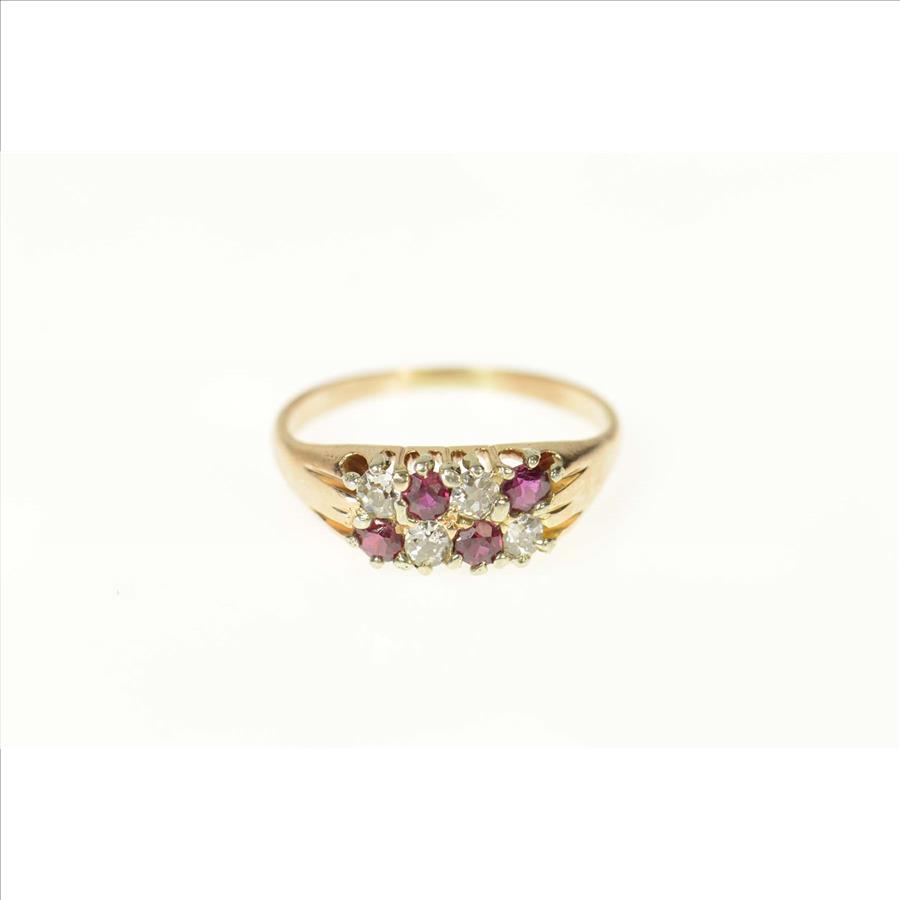 Item:  14K Old Mine Cut Natural Ruby & Diamond Classic Yellow Gold Ring, Size 5
