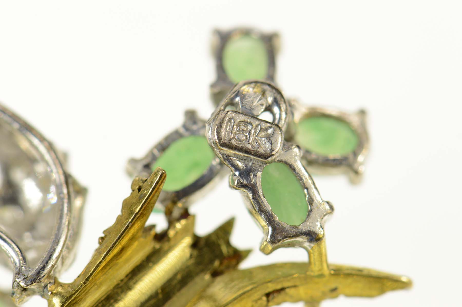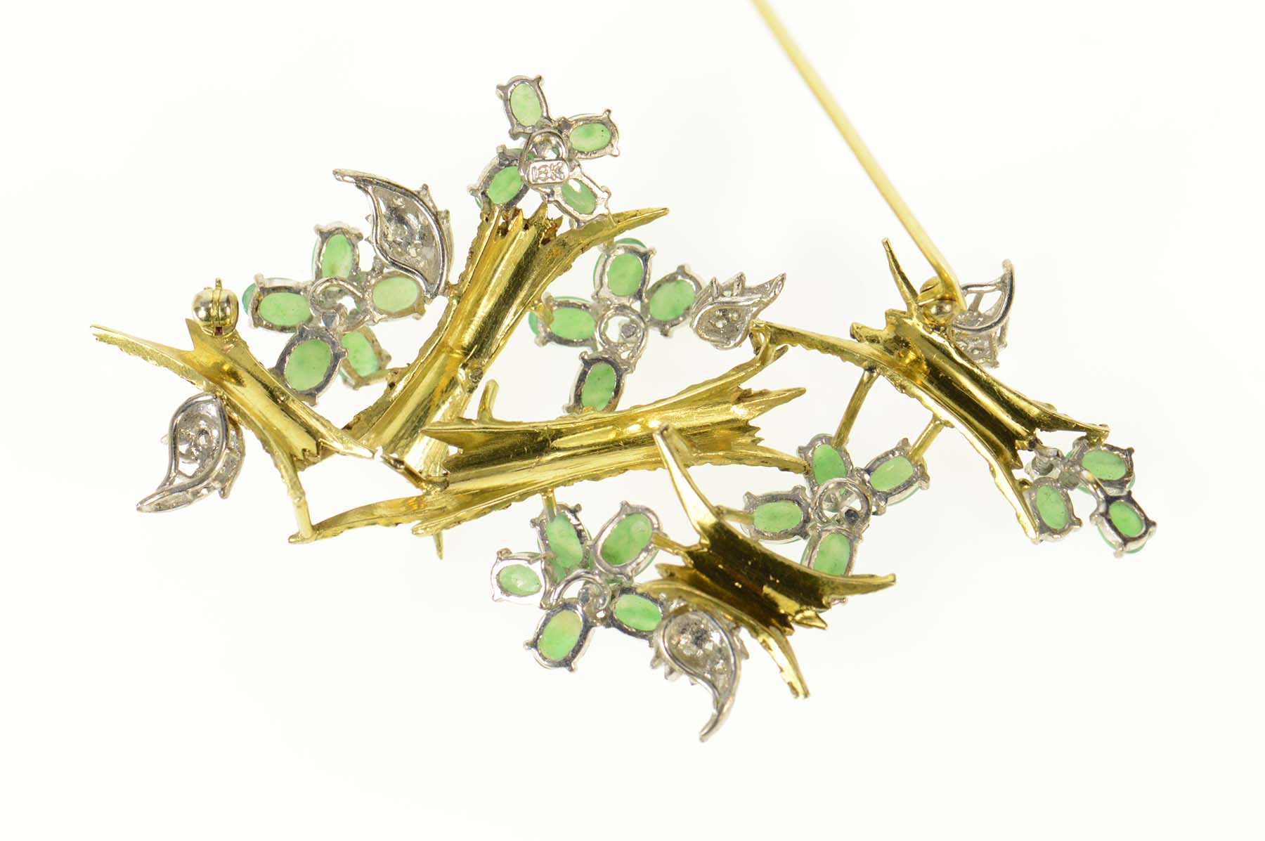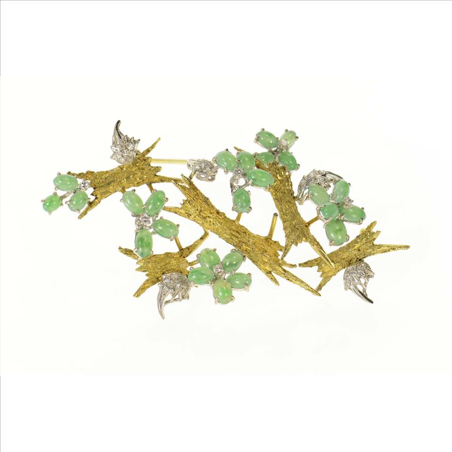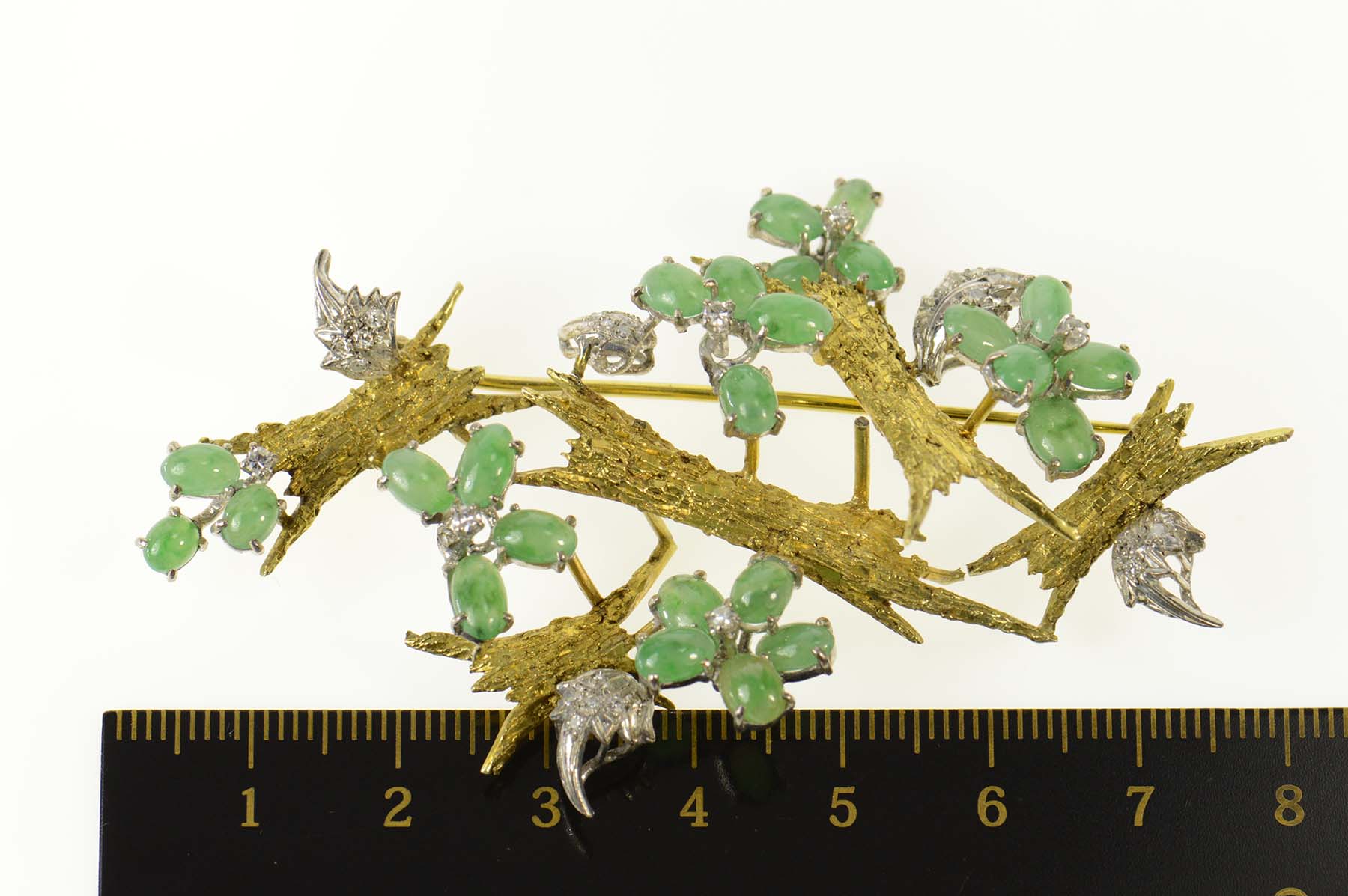 14K Ornate Retro Jade Diamond Tree Motif Yellow Gold Pin/Brooch