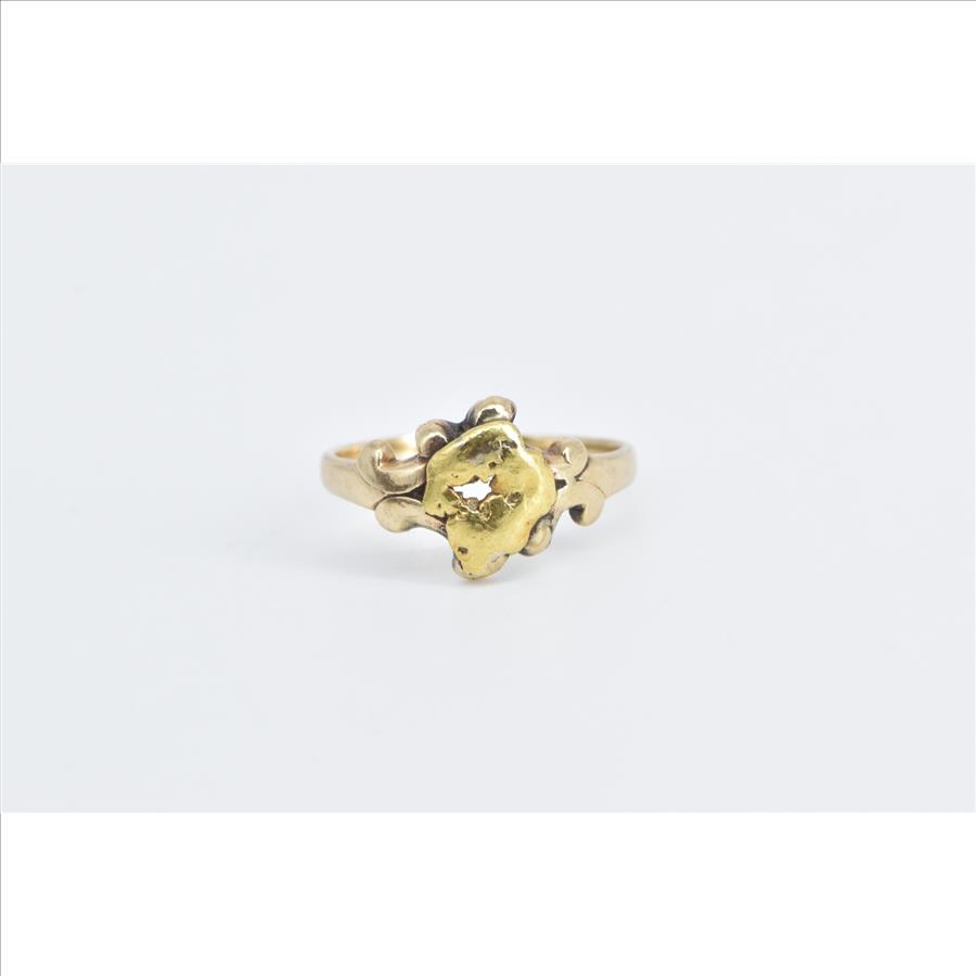 Item:  14K Ornate Textured 22k Solid Gold Nugget Yellow Gold Ring, Size 5.5