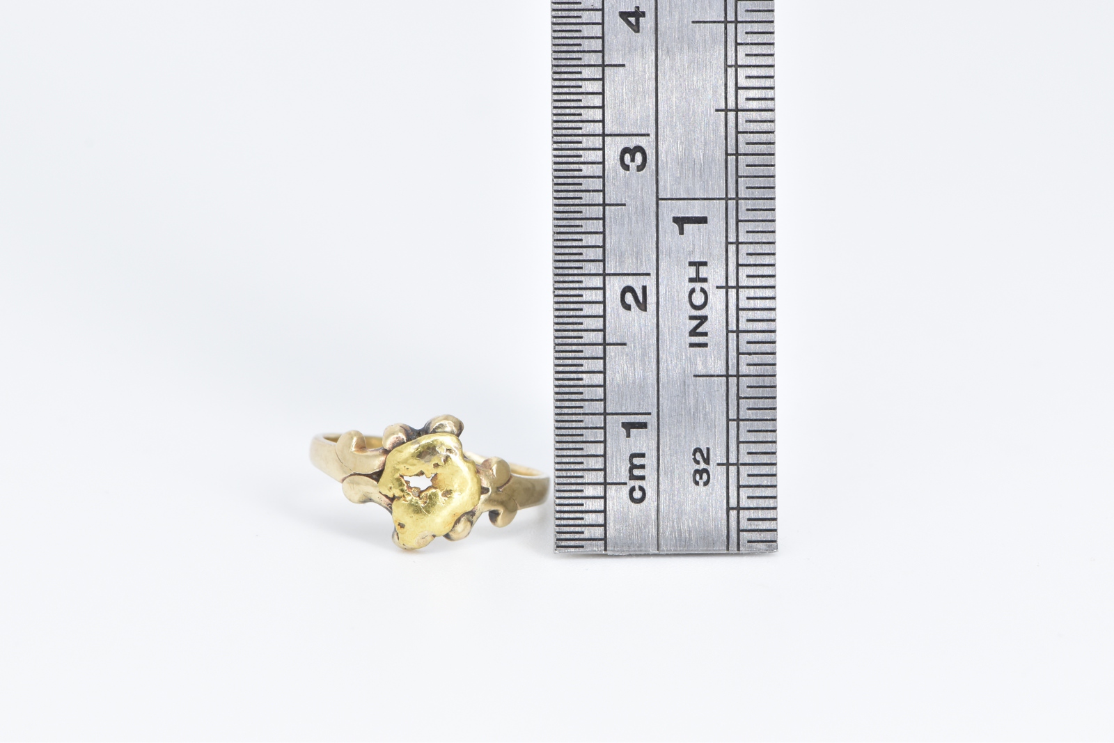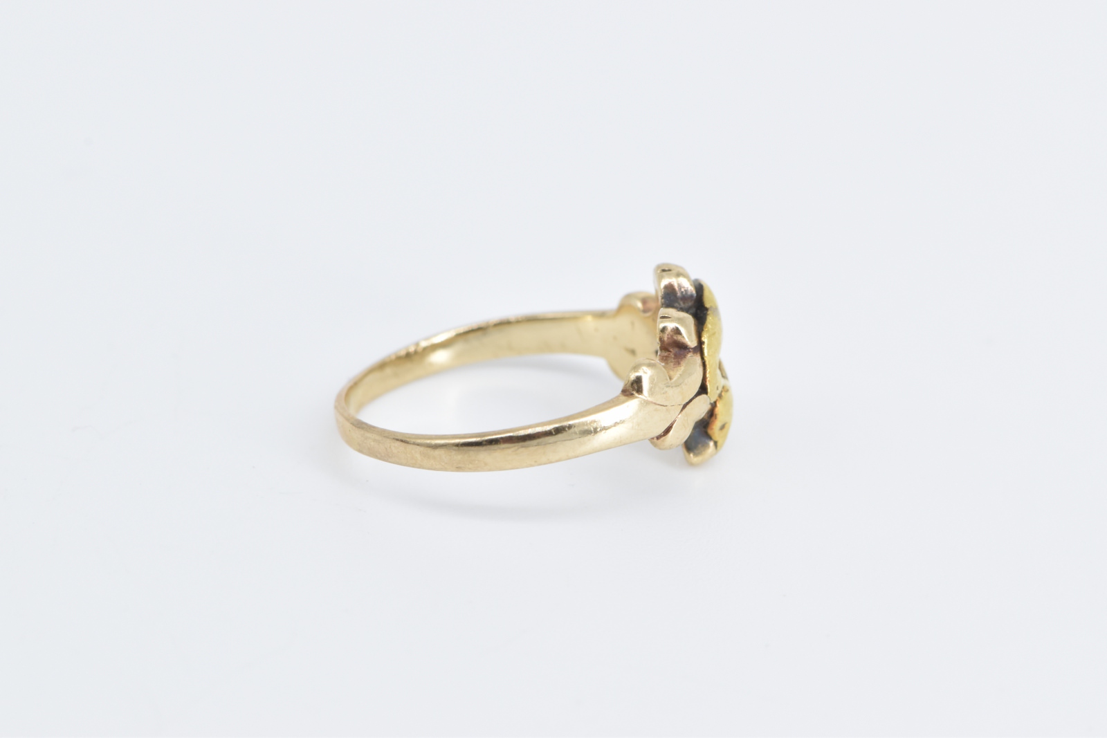Notes:  This two tone ring is 14k gold with a 22k gold nugget