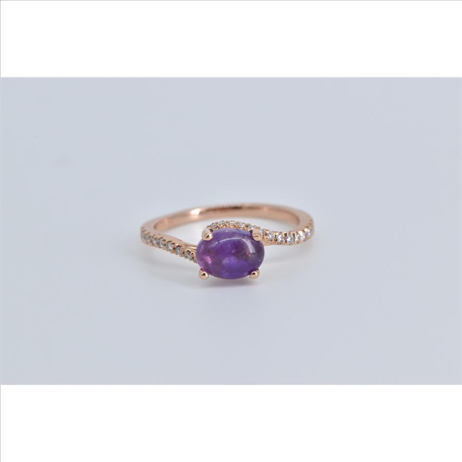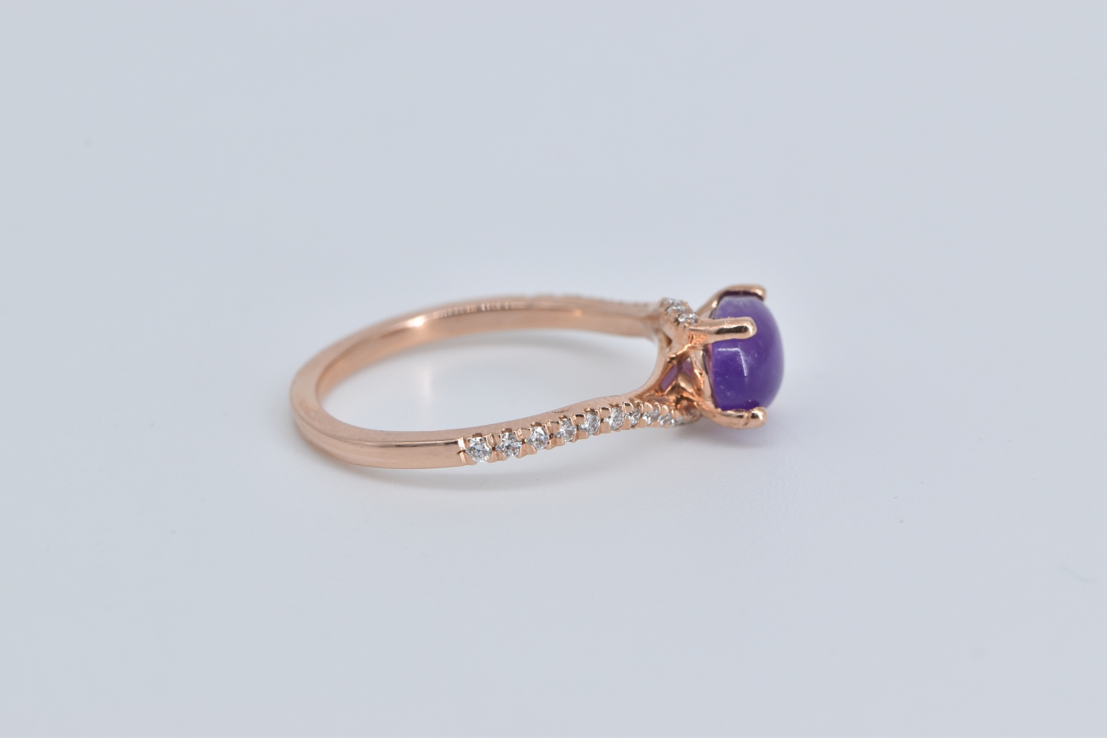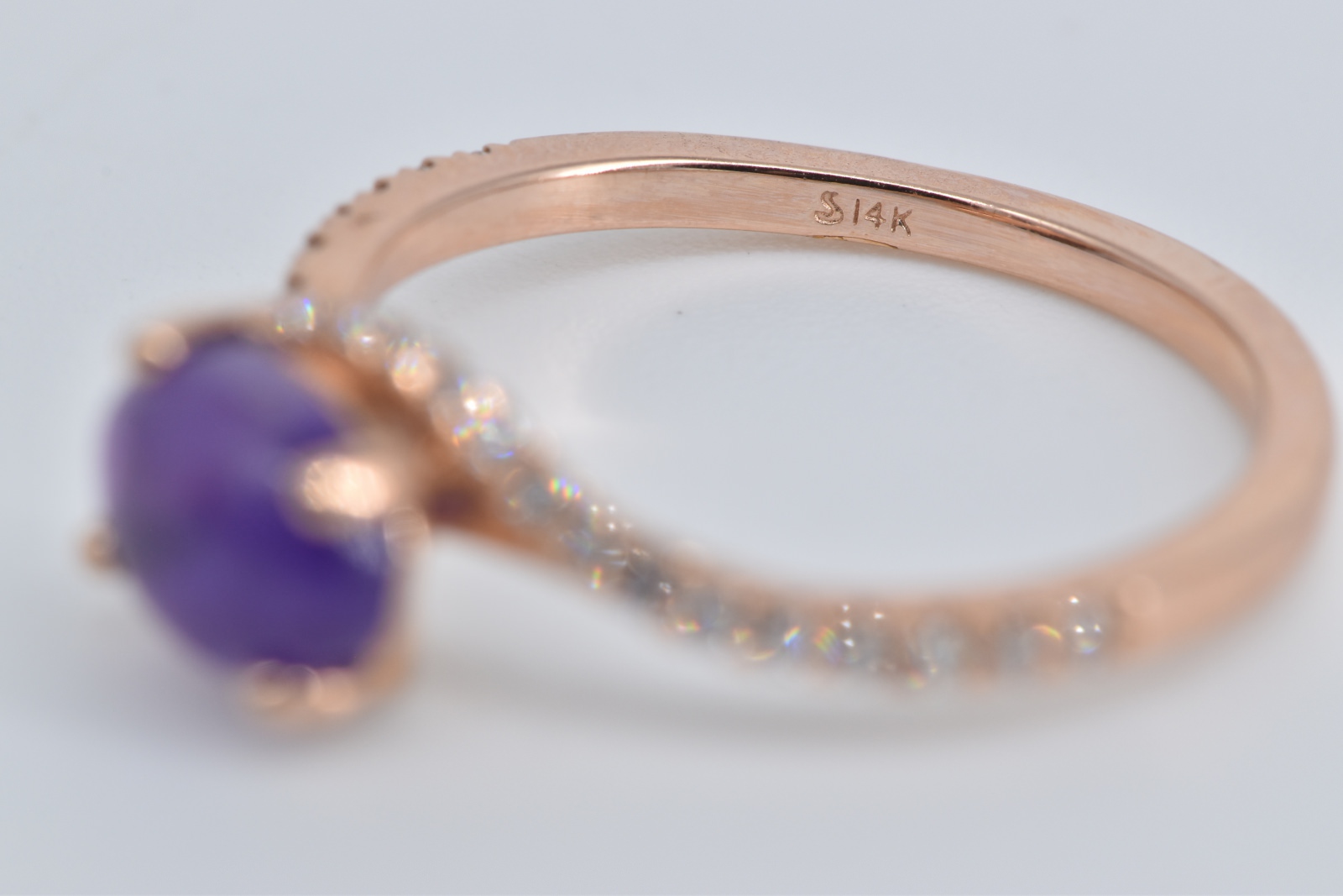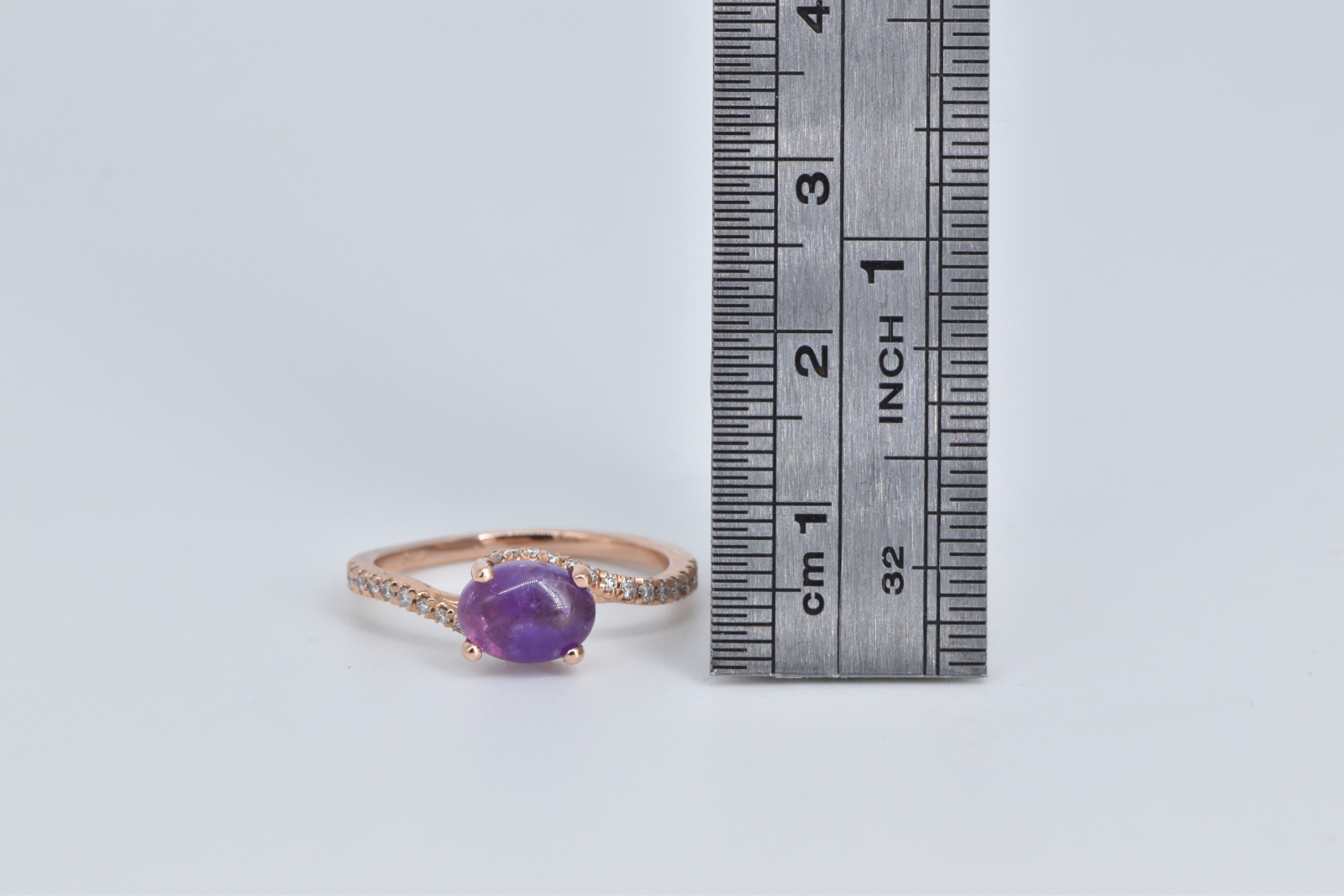 Item:  14K Oval Amethyst Cabochon Diamond Bypass Rose Gold Ring, Size 7.25