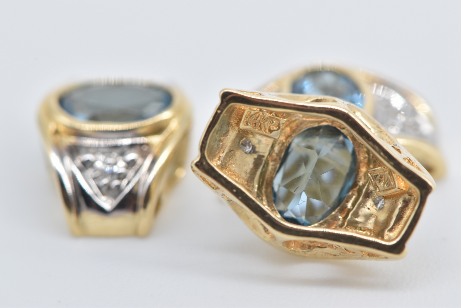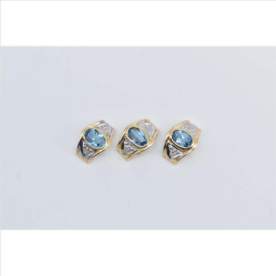 Item:  14K Oval Blue Topaz Diamond Ornate Slide Set (3 pcs) Yellow Gold Pendant