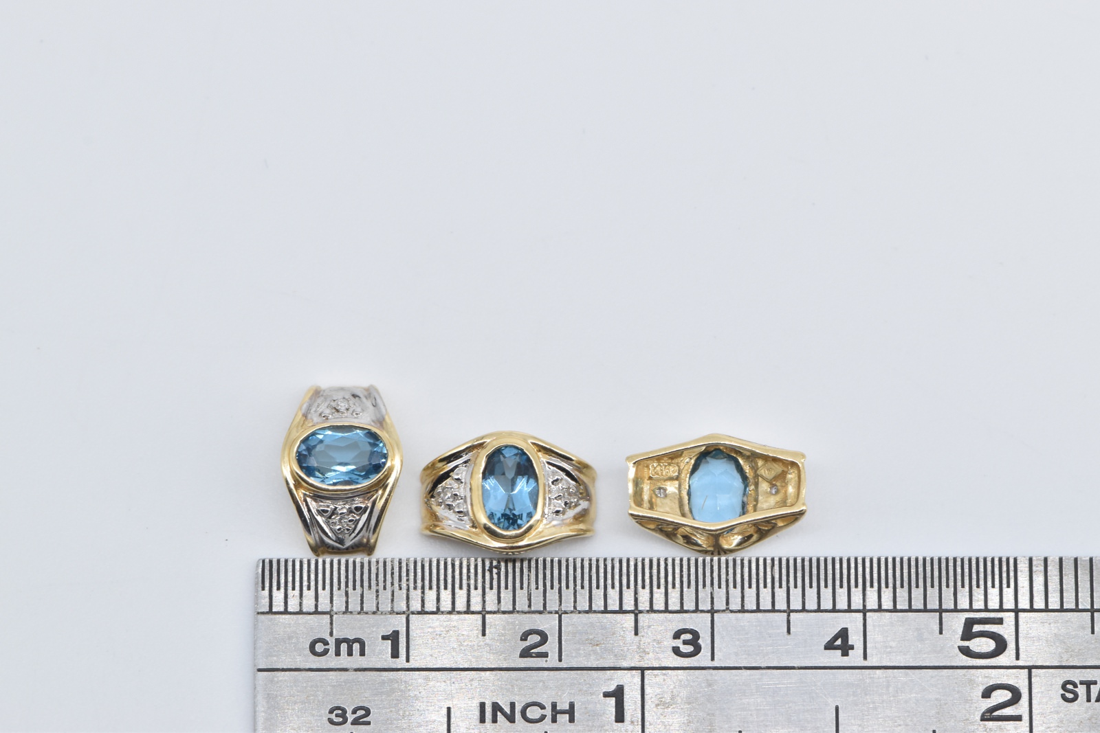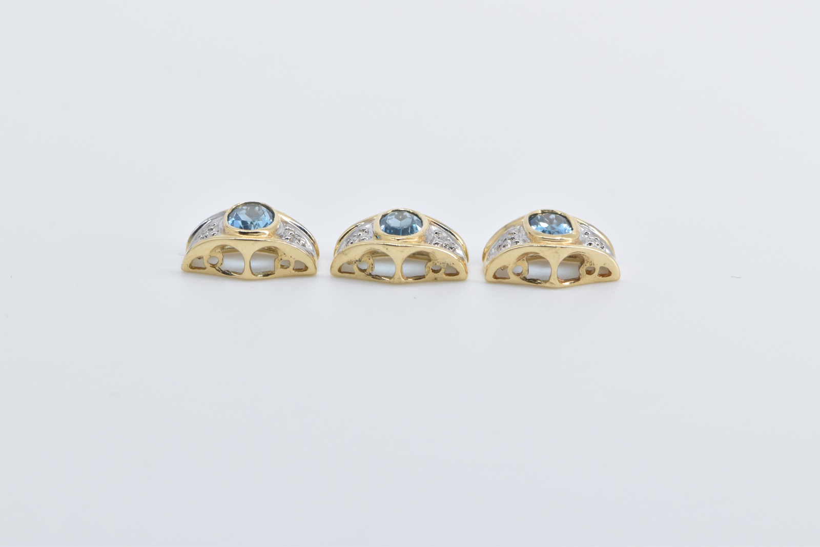 14K Oval Blue Topaz Diamond Ornate Slide Set (3 pcs) Yellow Gold Pendant