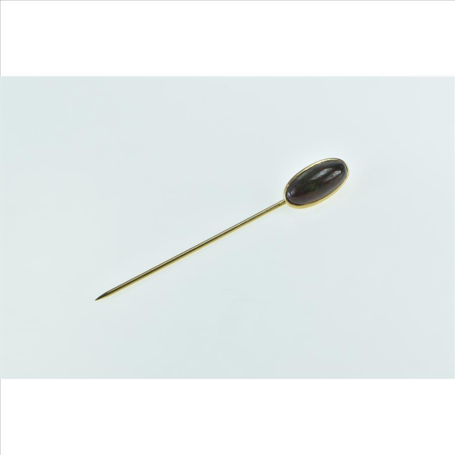14K Oval Jasper Cabochon Vintage Ornate Yellow Gold Stick Pin