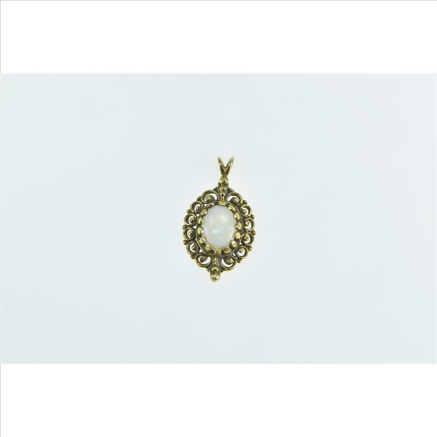 14K Oval Natural Opal Vintage Filigree Statement Yellow Gold Pendant
