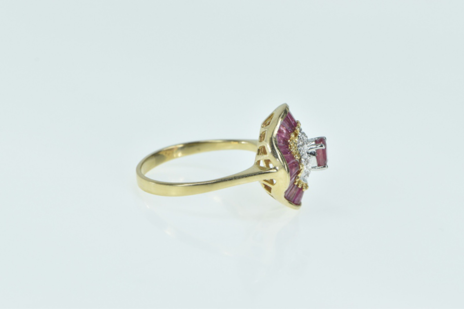 Item:  14K Oval Ruby Diamond Ballerina Halo Statement Yellow Gold Ring, Size 8
