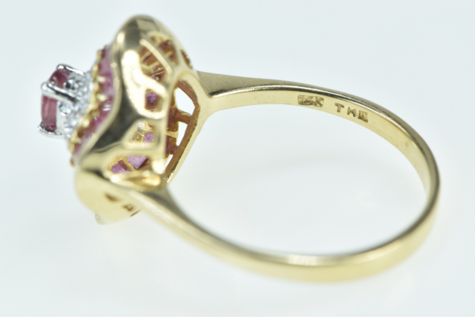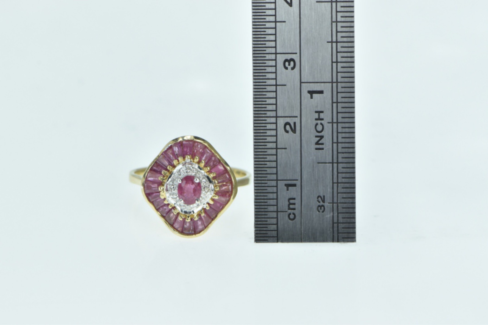 14K Oval Ruby Diamond Ballerina Halo Statement Yellow Gold Ring, Size 8