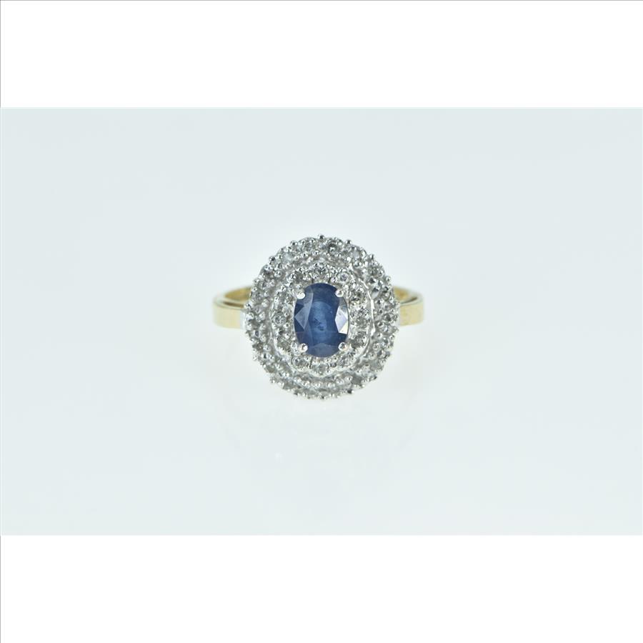 14K Oval Sapphire Diamond Halo Cocktail Yellow Gold Ring, Size 7.25