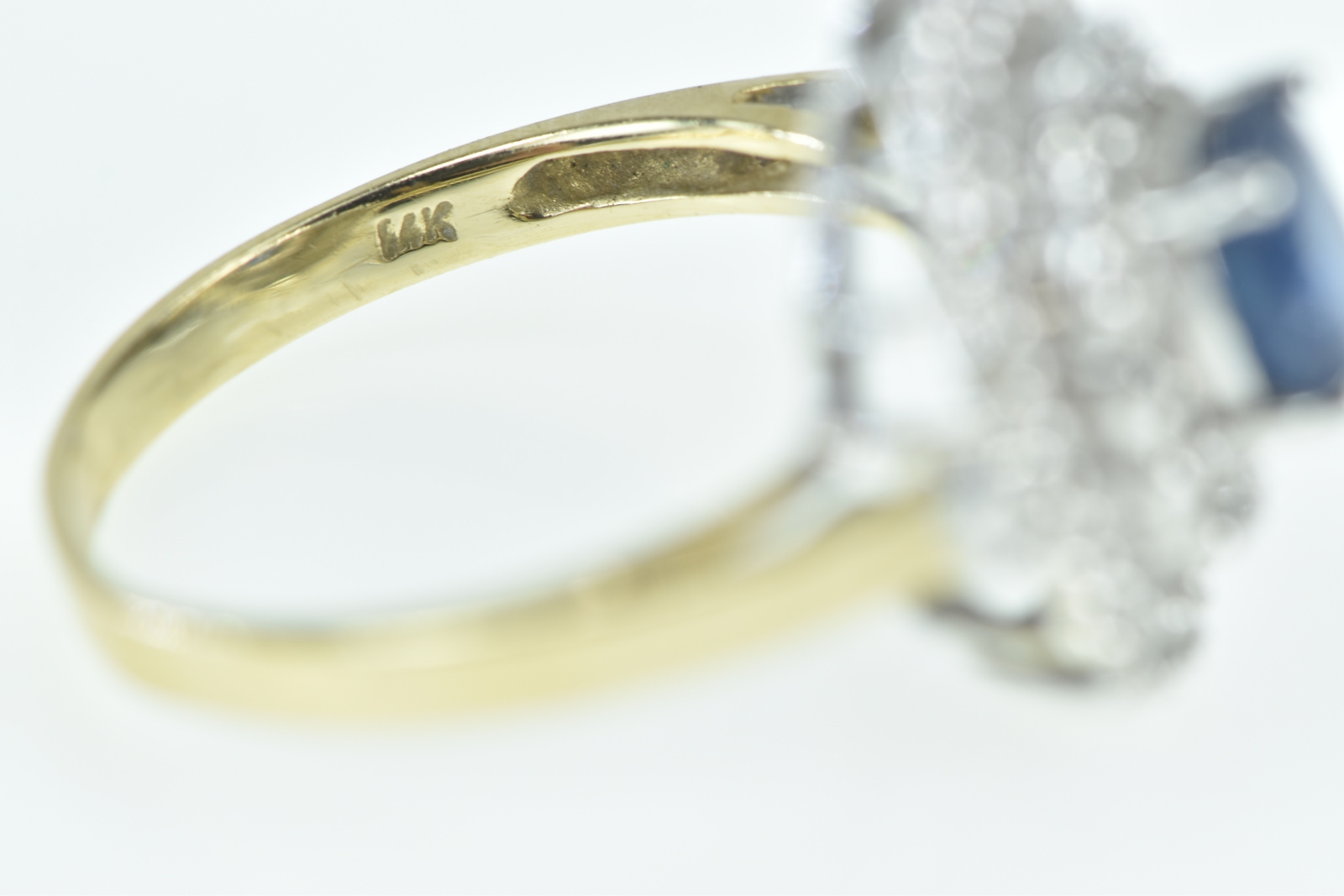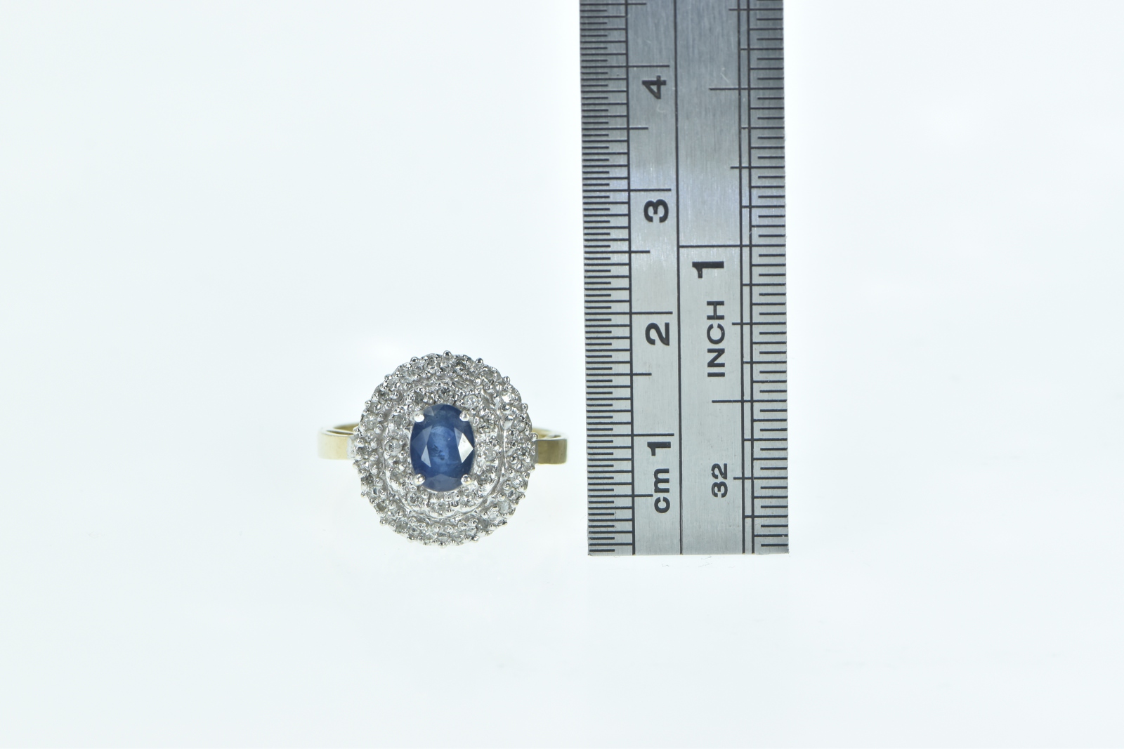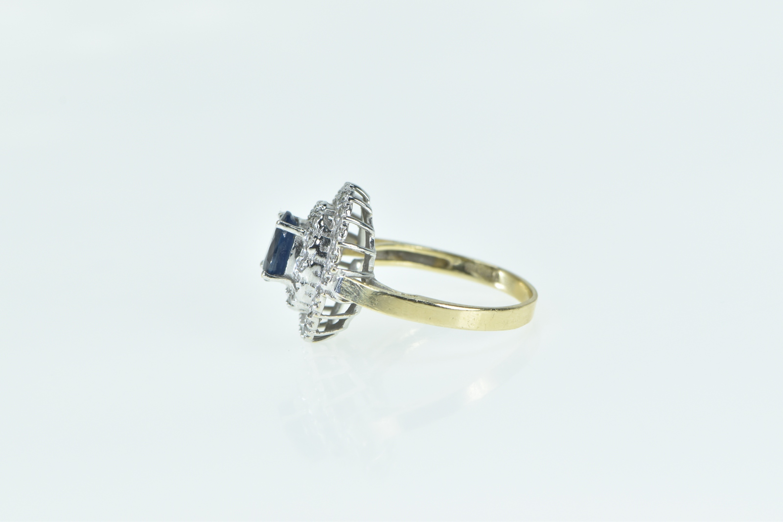 Item:  14K Oval Sapphire Diamond Halo Cocktail Yellow Gold Ring, Size 7.25