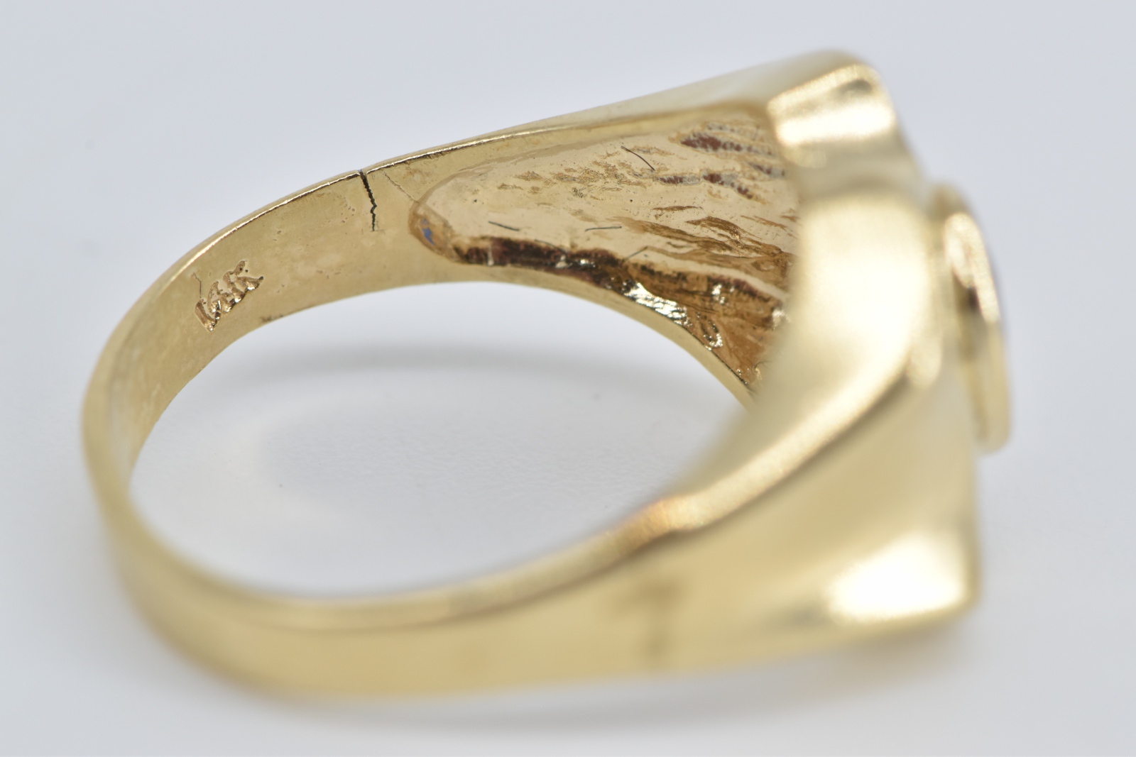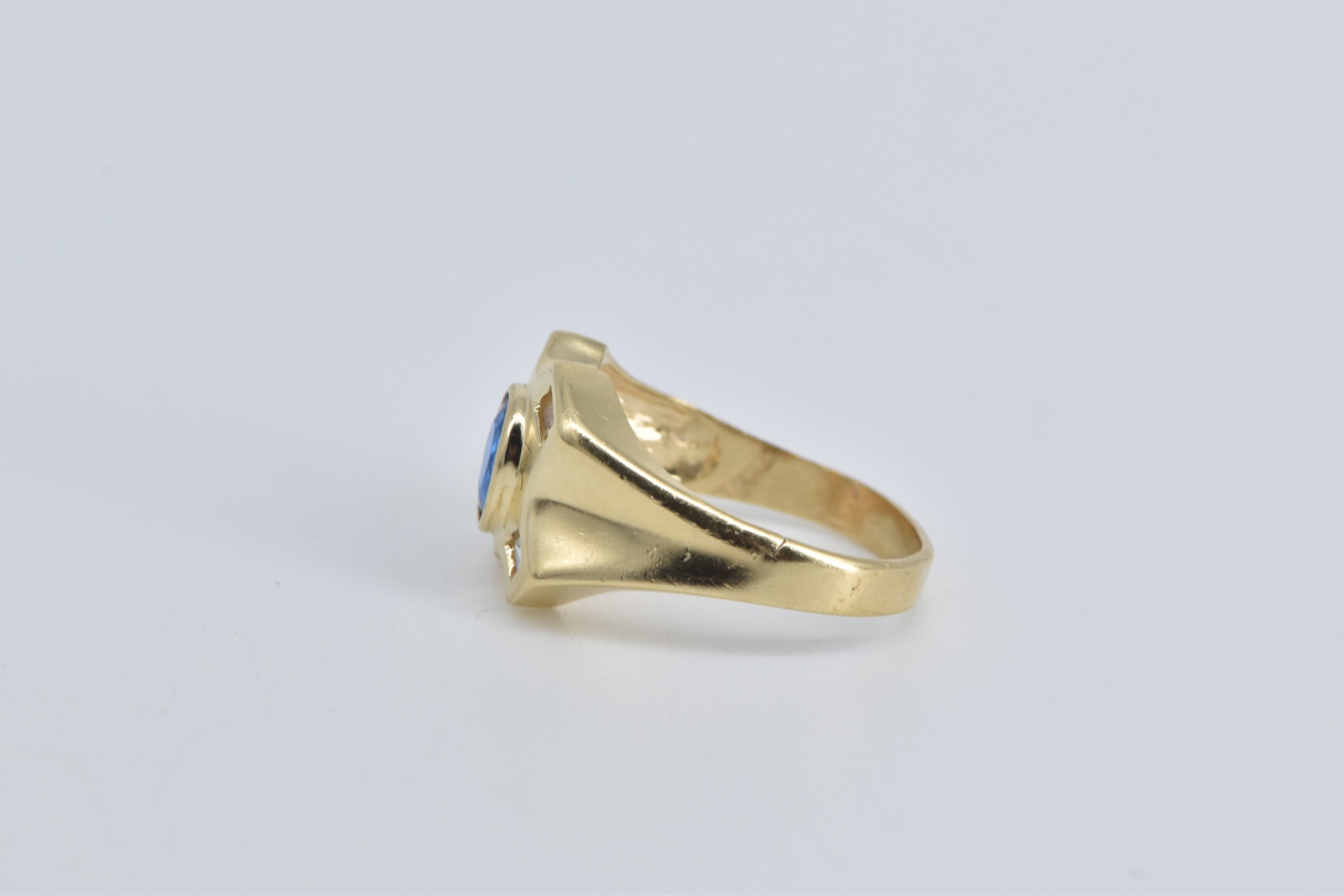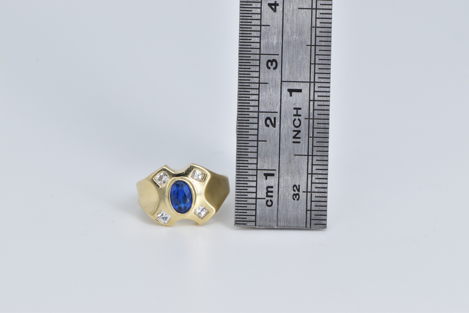 14K Oval Sim. Sapphire CZ X Criss Cross Fashion Yellow Gold Ring, Size 4