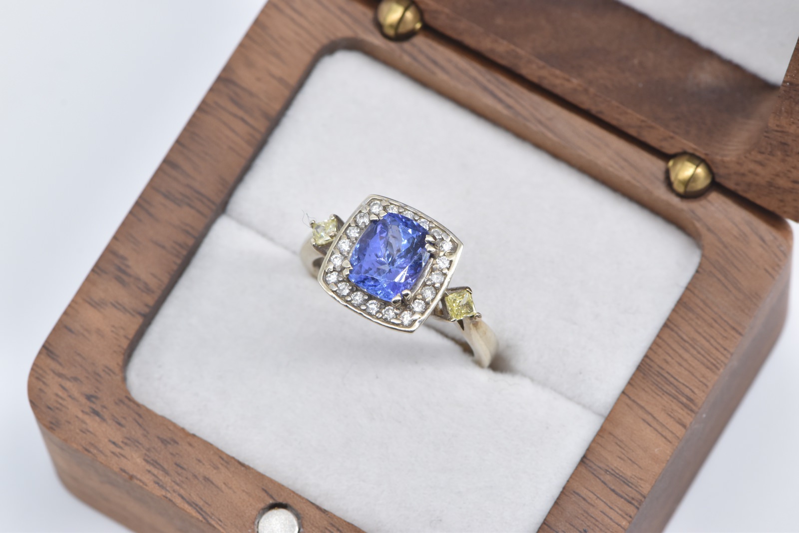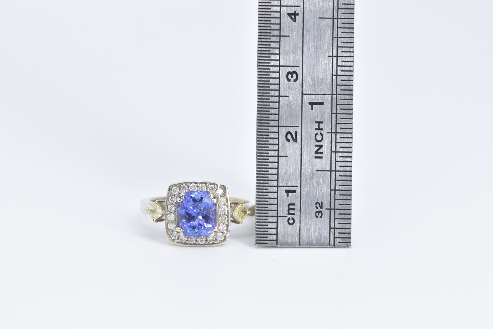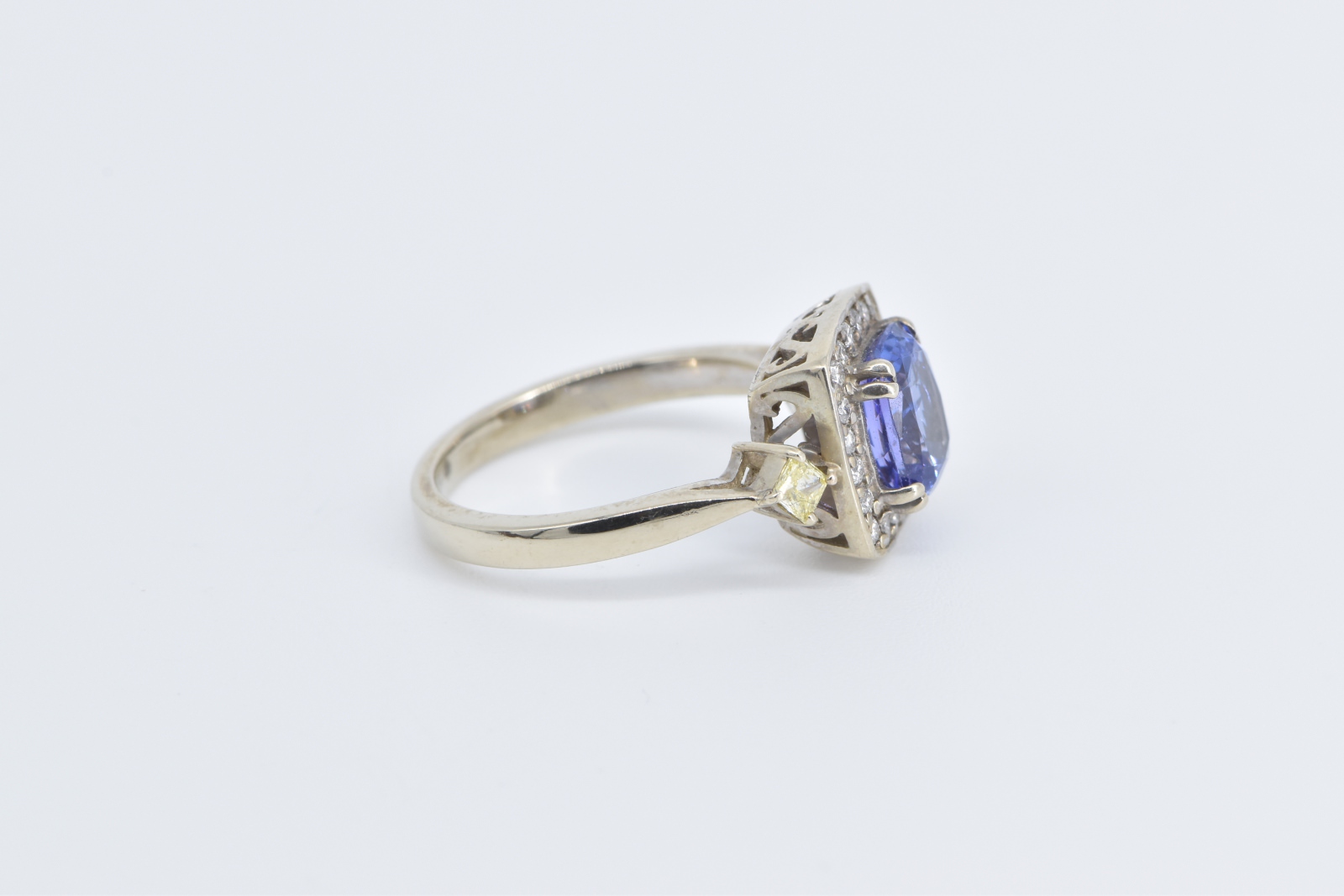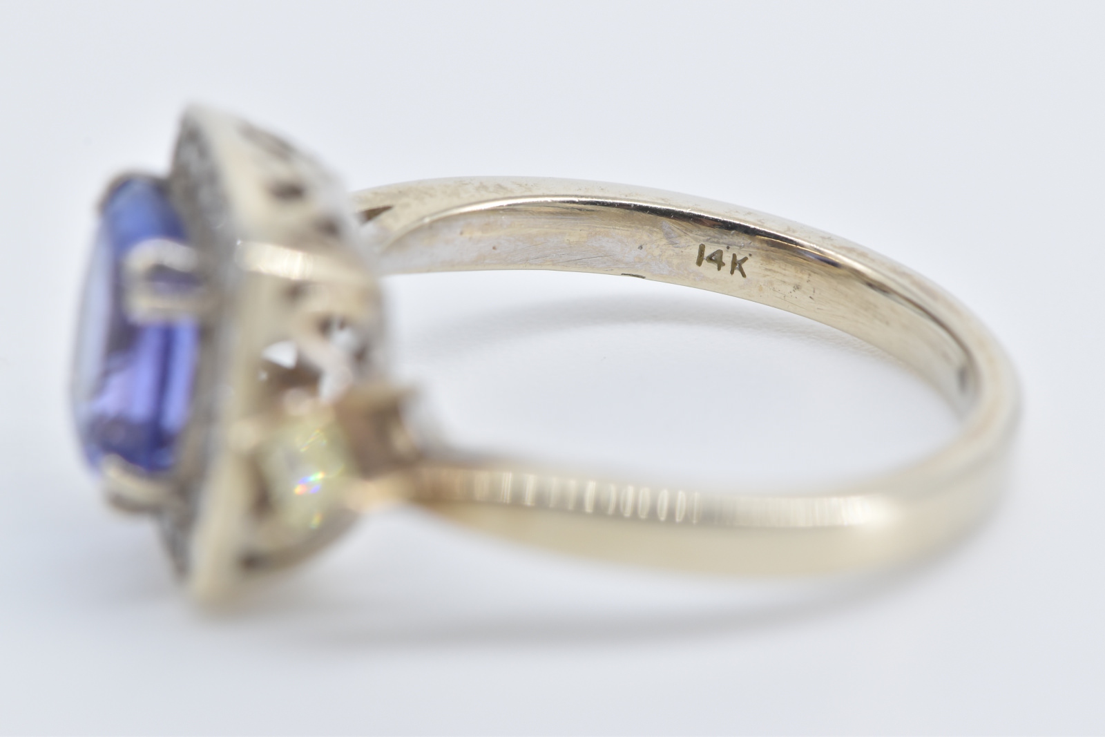 14K Oval Tanzanite Diamond Halo Princess Accent White Gold Ring, Size 6