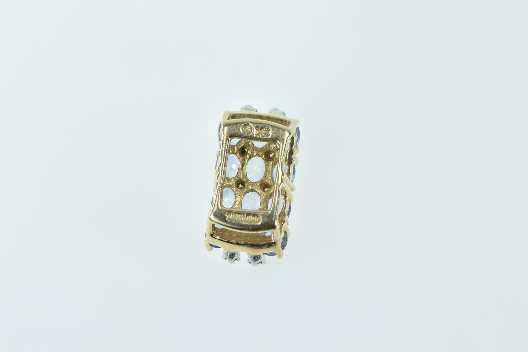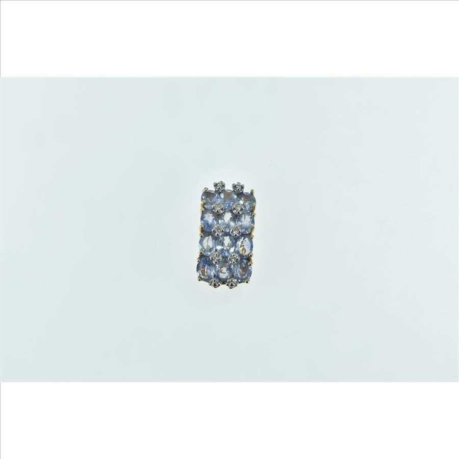 Item:  14K Oval Tanzanite Diamond Squared Slide Yellow Gold Pendant
