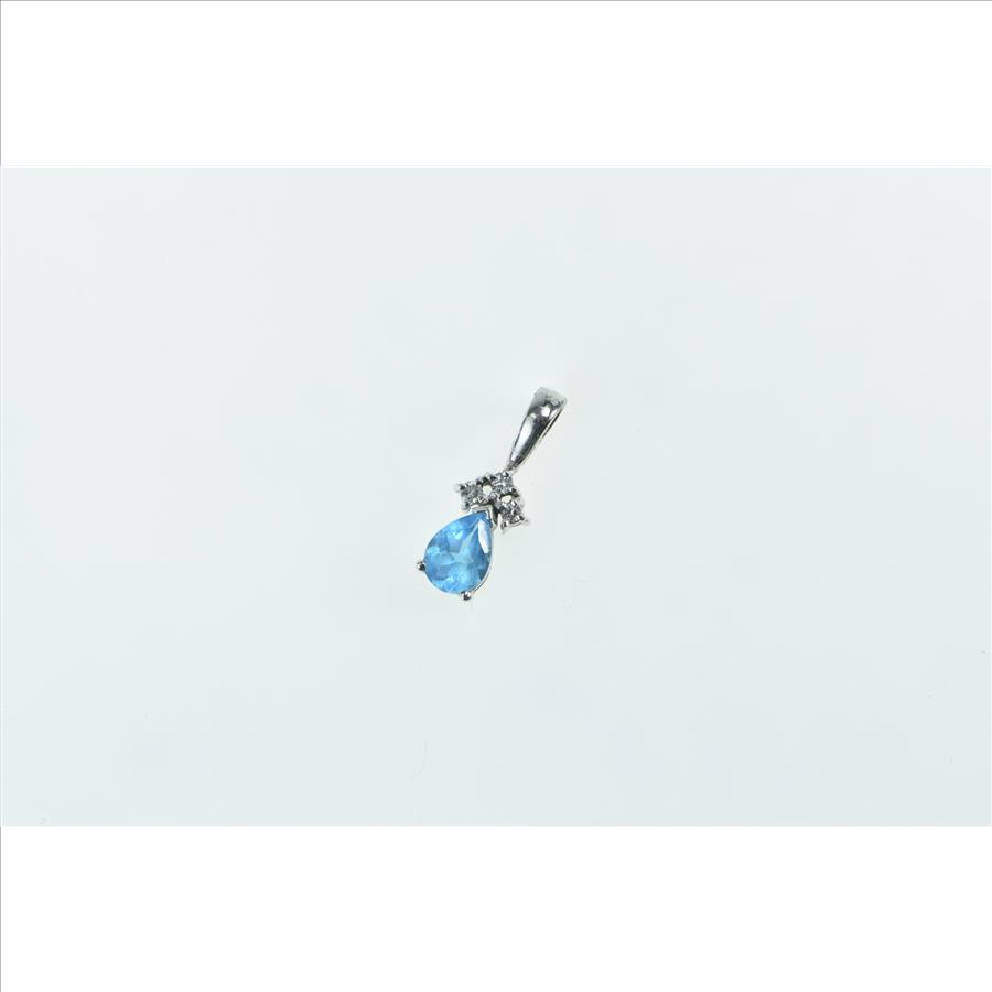 14K Pear Blue Topaz Diamond Vintage Classic White Gold Pendant