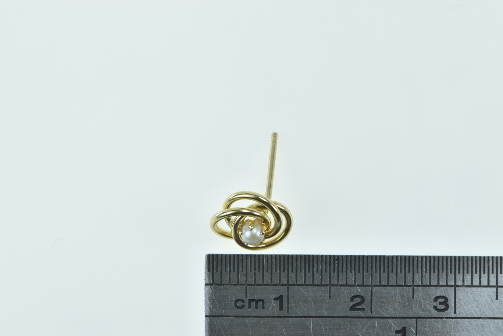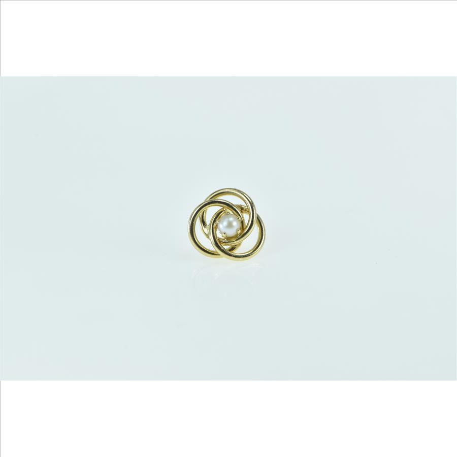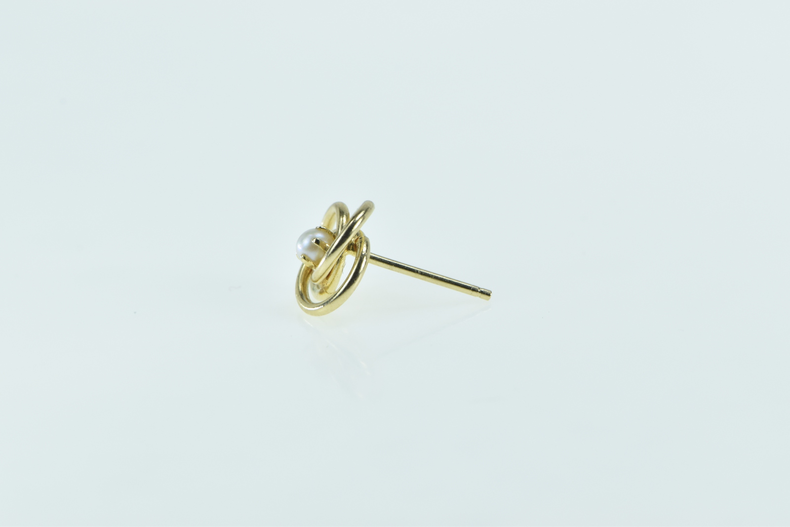 14K Pearl Celtic Knot Woven Design Single Stud Yellow Gold Earring