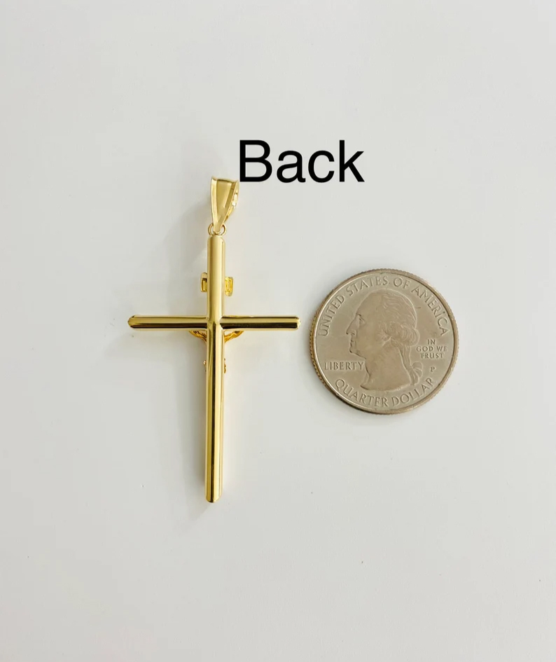 14K Real Yellow Gold Jesus Christ Cross Pendant INRI Crucifix Cross