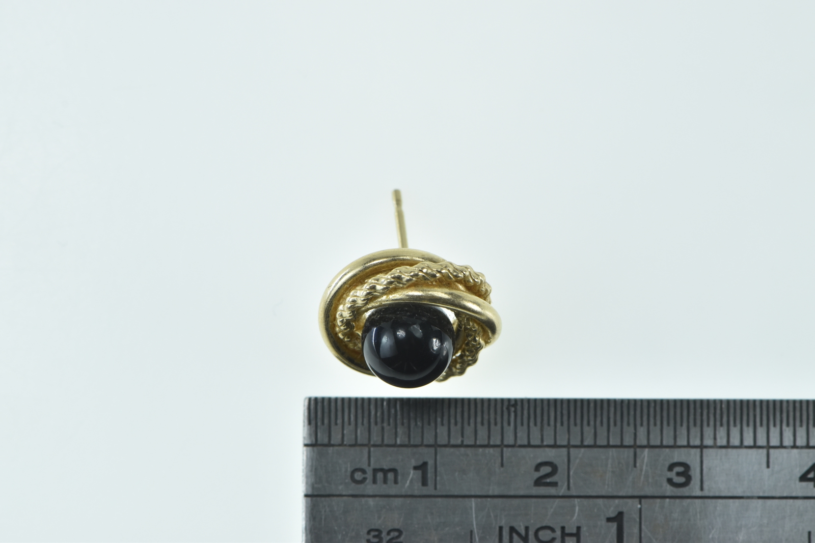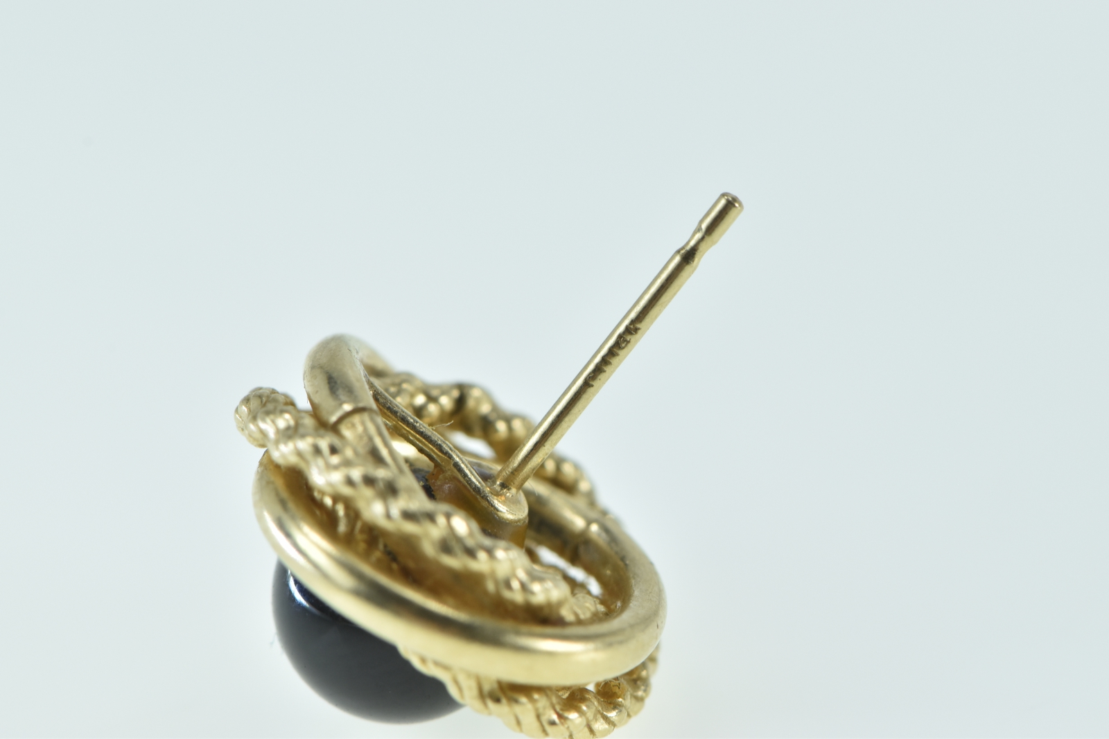 Item:  14K Round Black Onyx Ball Twist Spiral Single Stud Yellow Gold Earring
