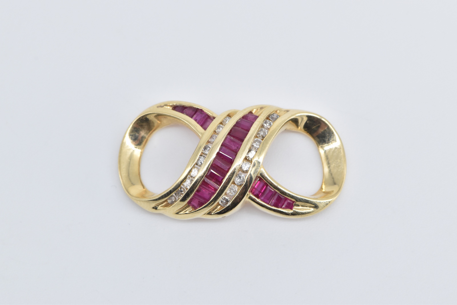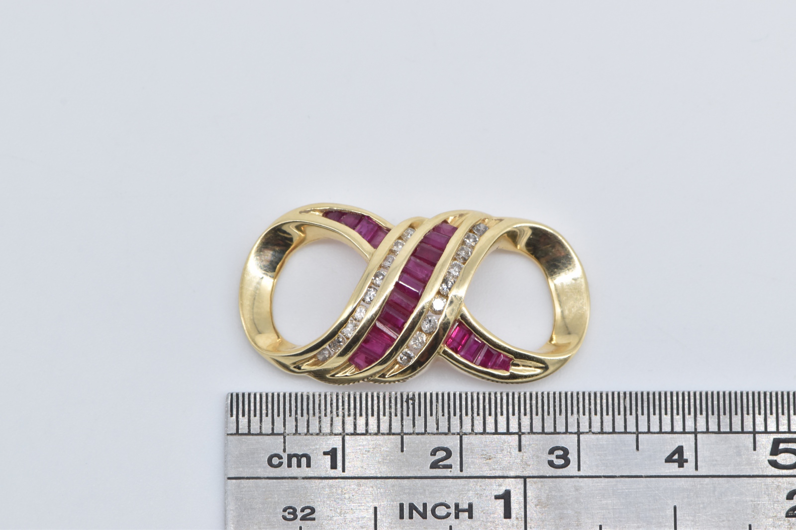 14K Ruby Diamond Infinity Forever Symbol Slide Yellow Gold Pendant