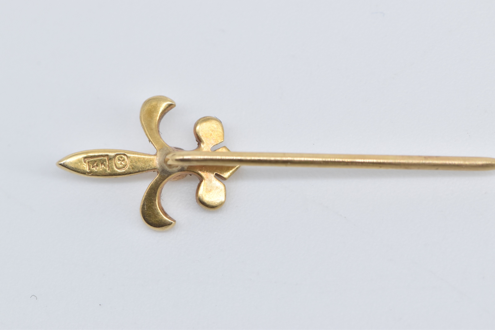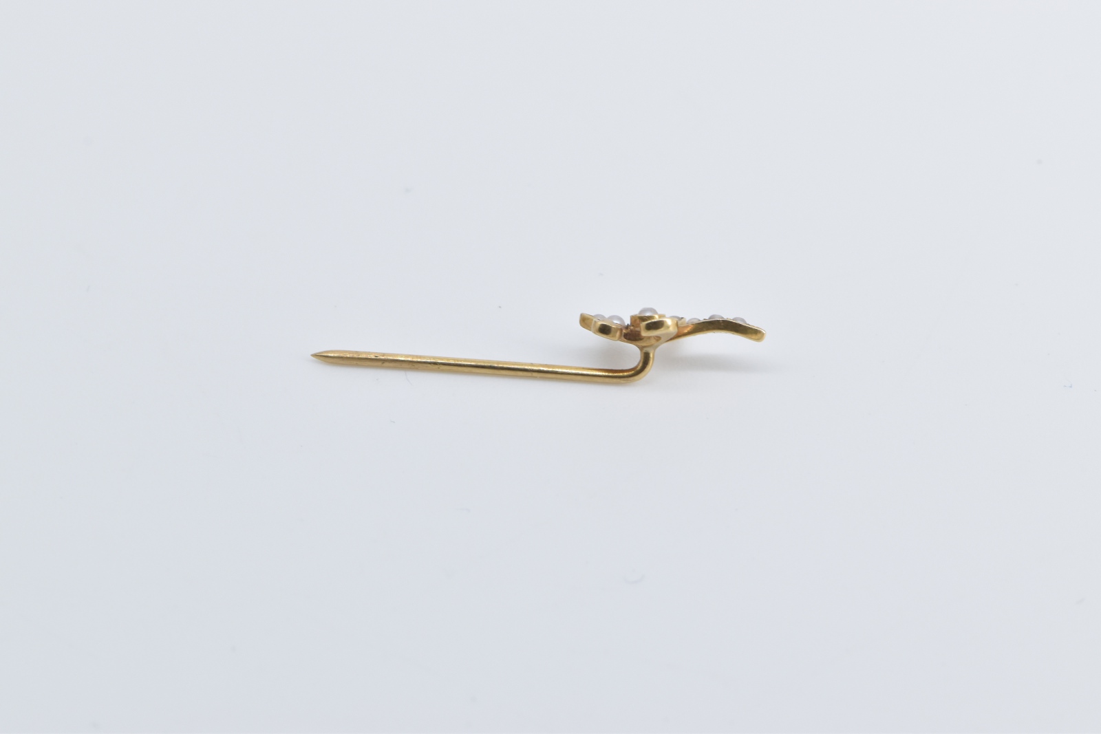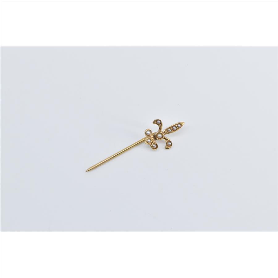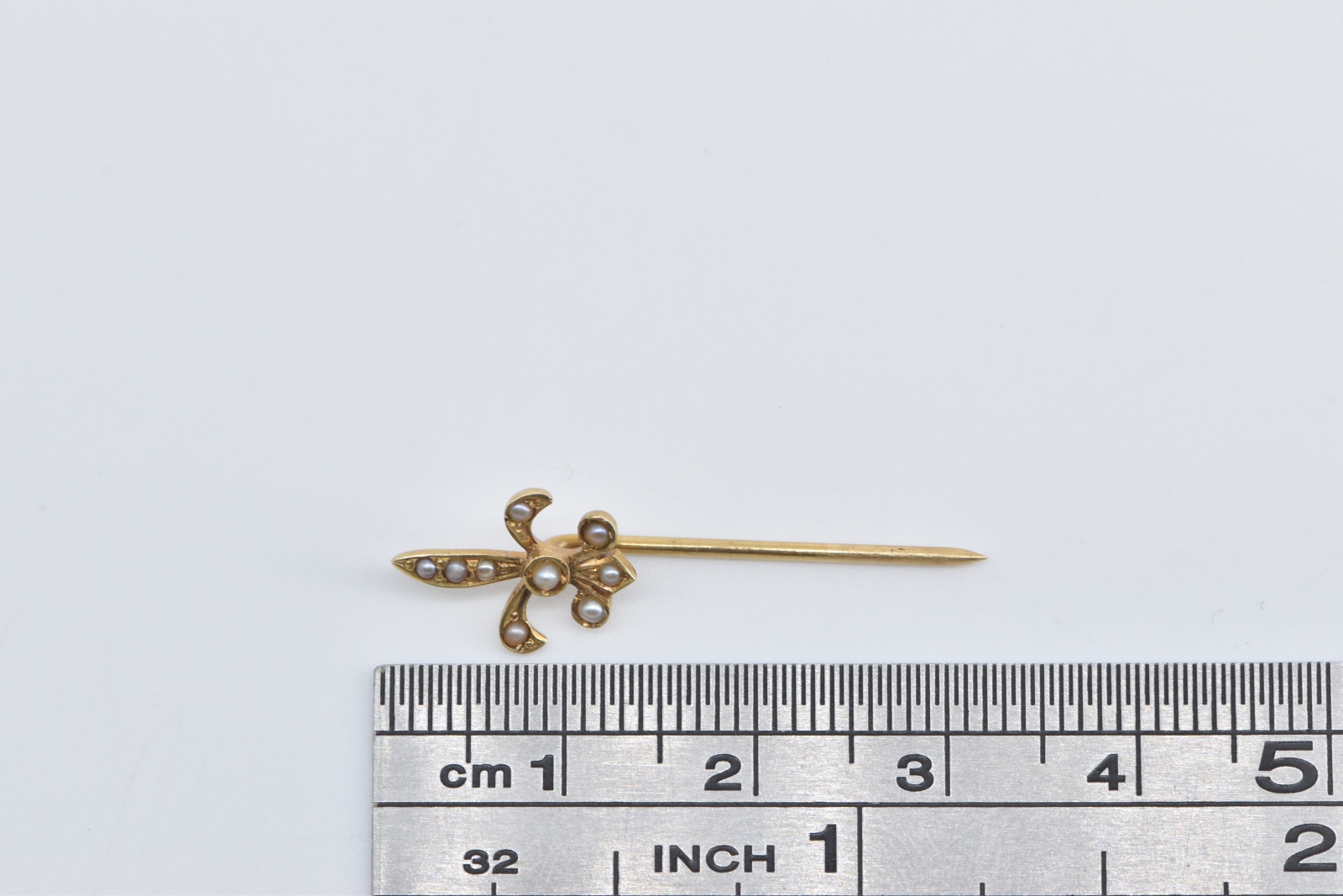 14K Seed Pearl Fleur De Lis Ornate Statement Yellow Gold Stick Pin