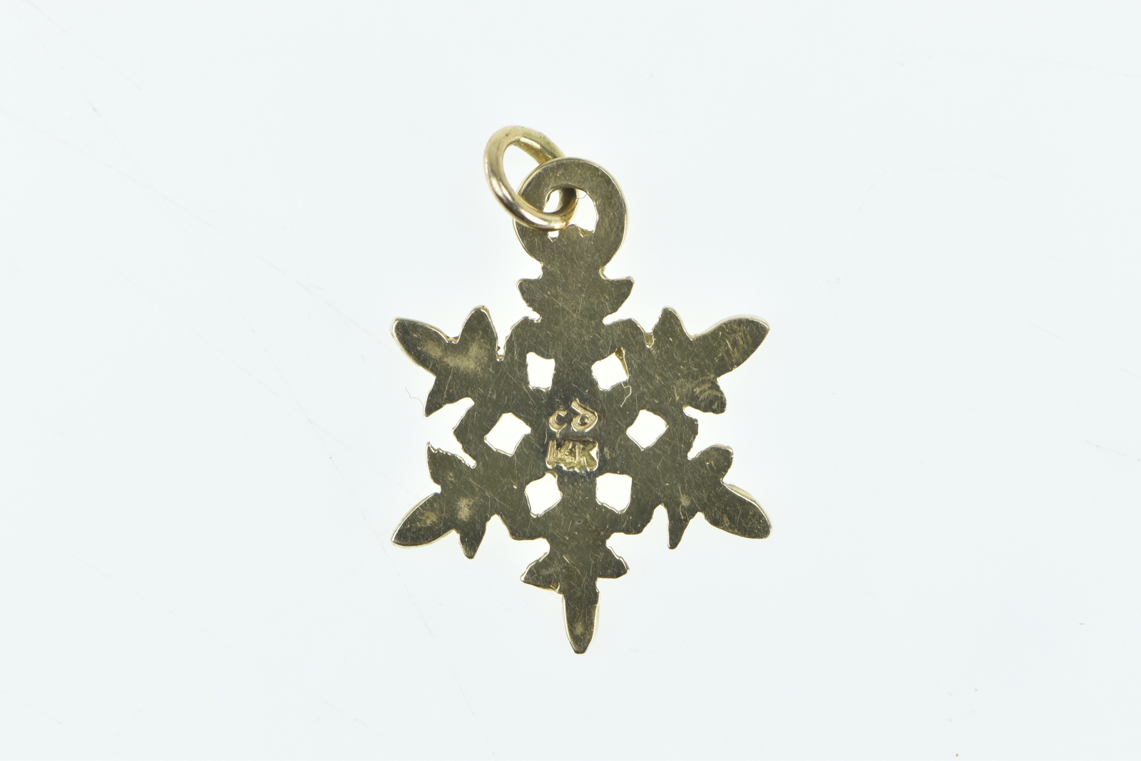 Item:  14K Snow Flake Cold Winter Weather Holiday Season Yellow Gold Charm/Pendant