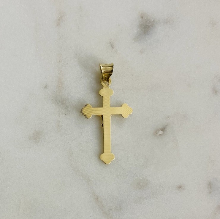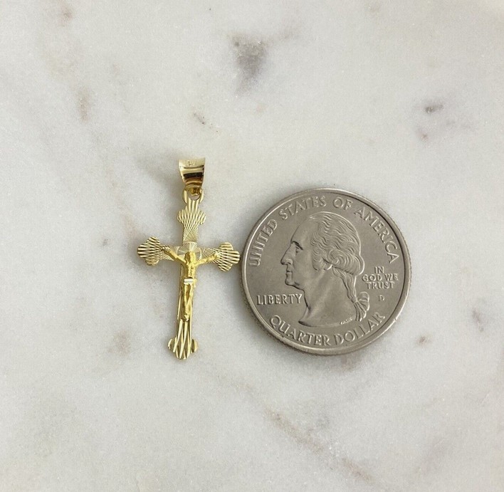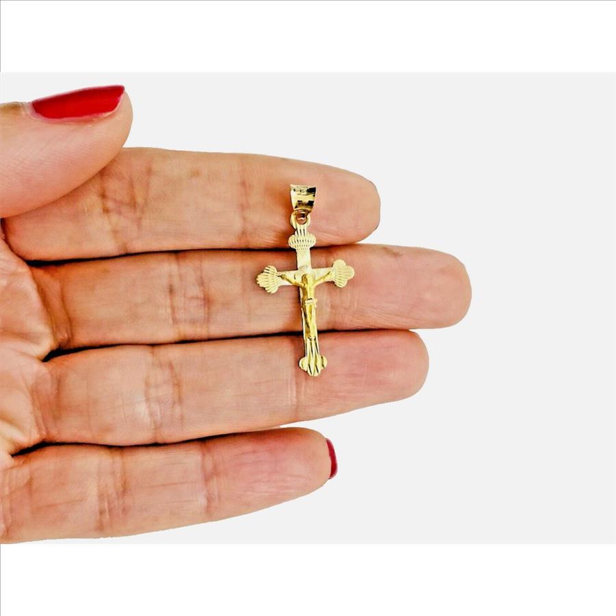 14K Solid Gold Jesus Christ Cross Pendant - 1.1" Diamond Cut Crucifix