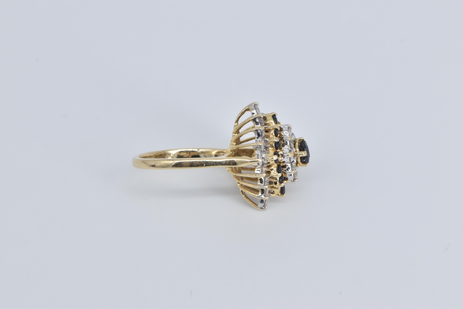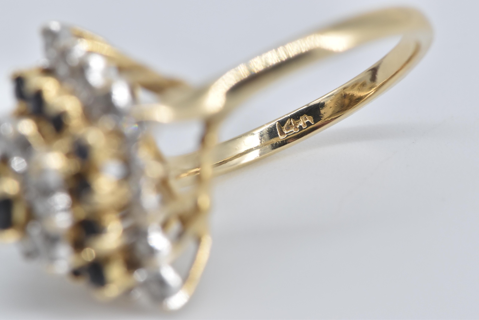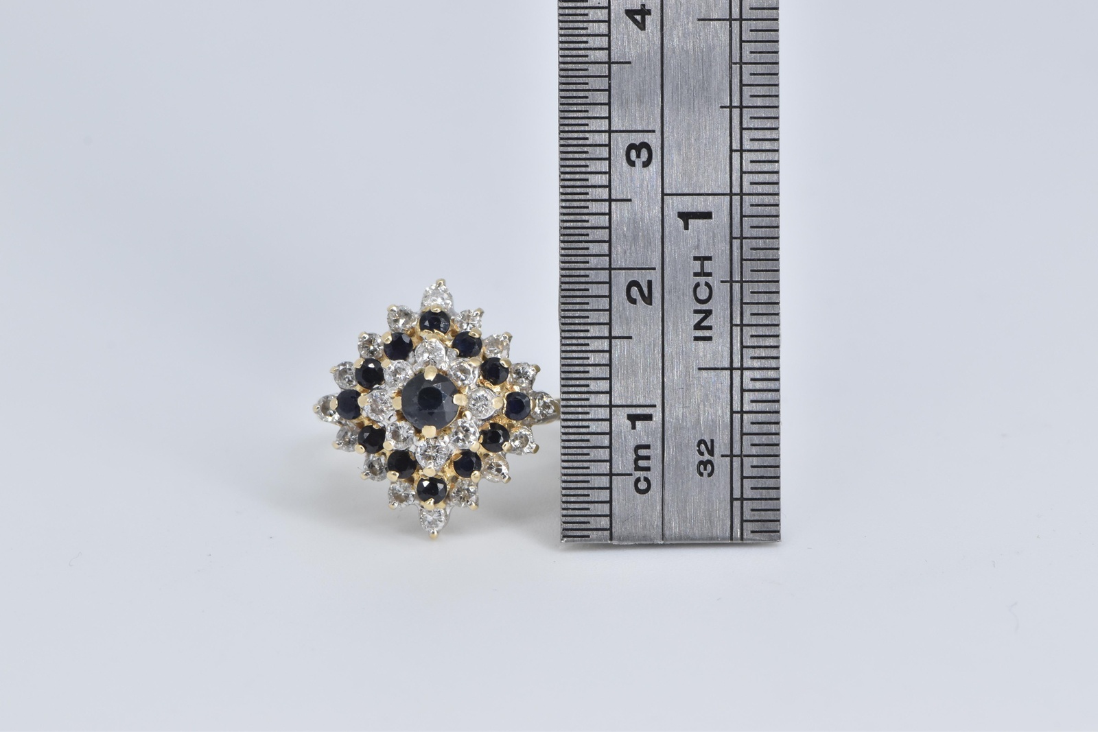 14K Square Sapphire Natural Diamond Halo Cluster Yellow Gold Ring, Size 6.75