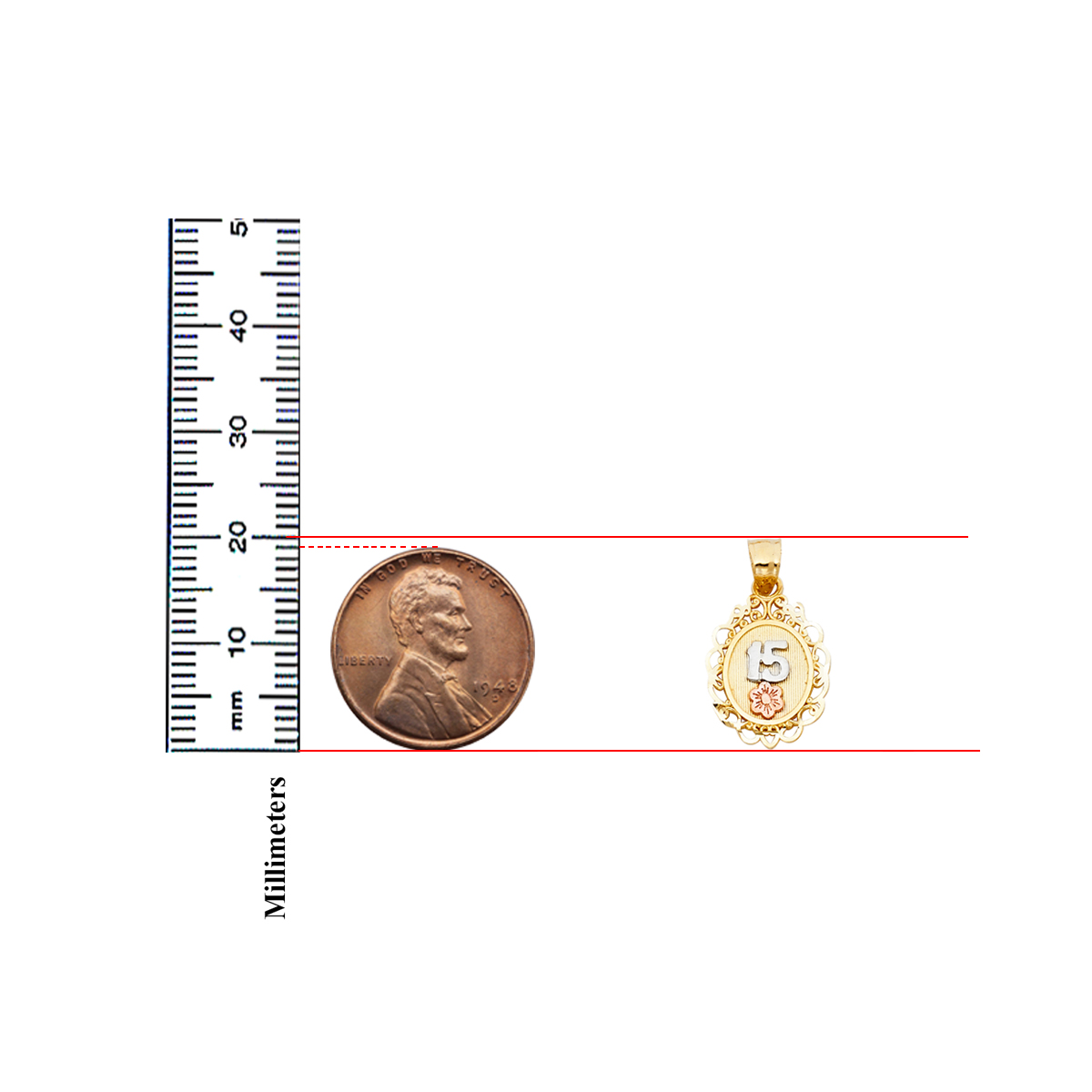 14K Tri Color Gold 15 Years Heart Pendant