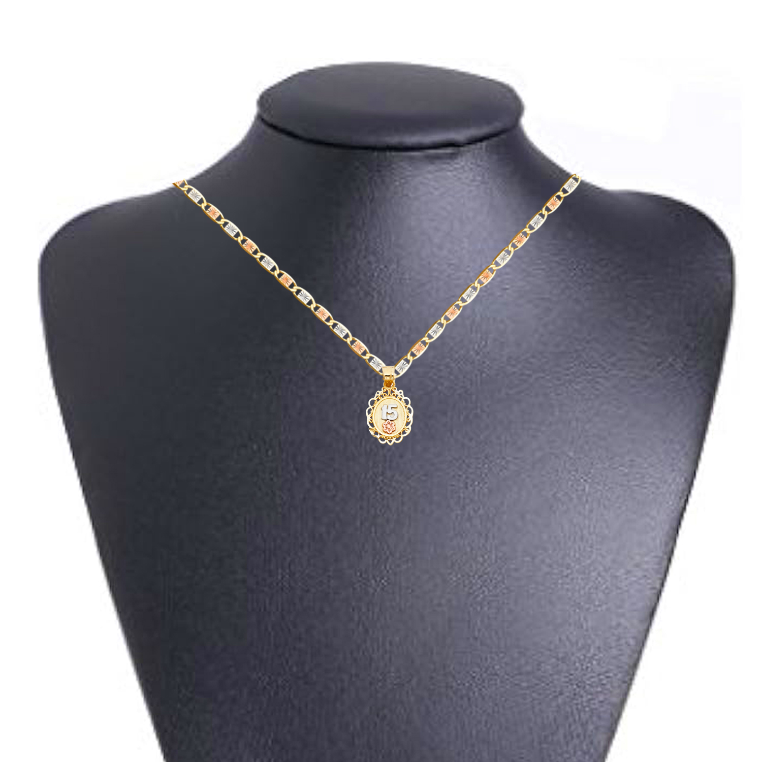 14K Tri Color Gold 15 Years Heart Pendant with 14K Tri Color Gold 1.5mm Valentono Chain - 18 Inch