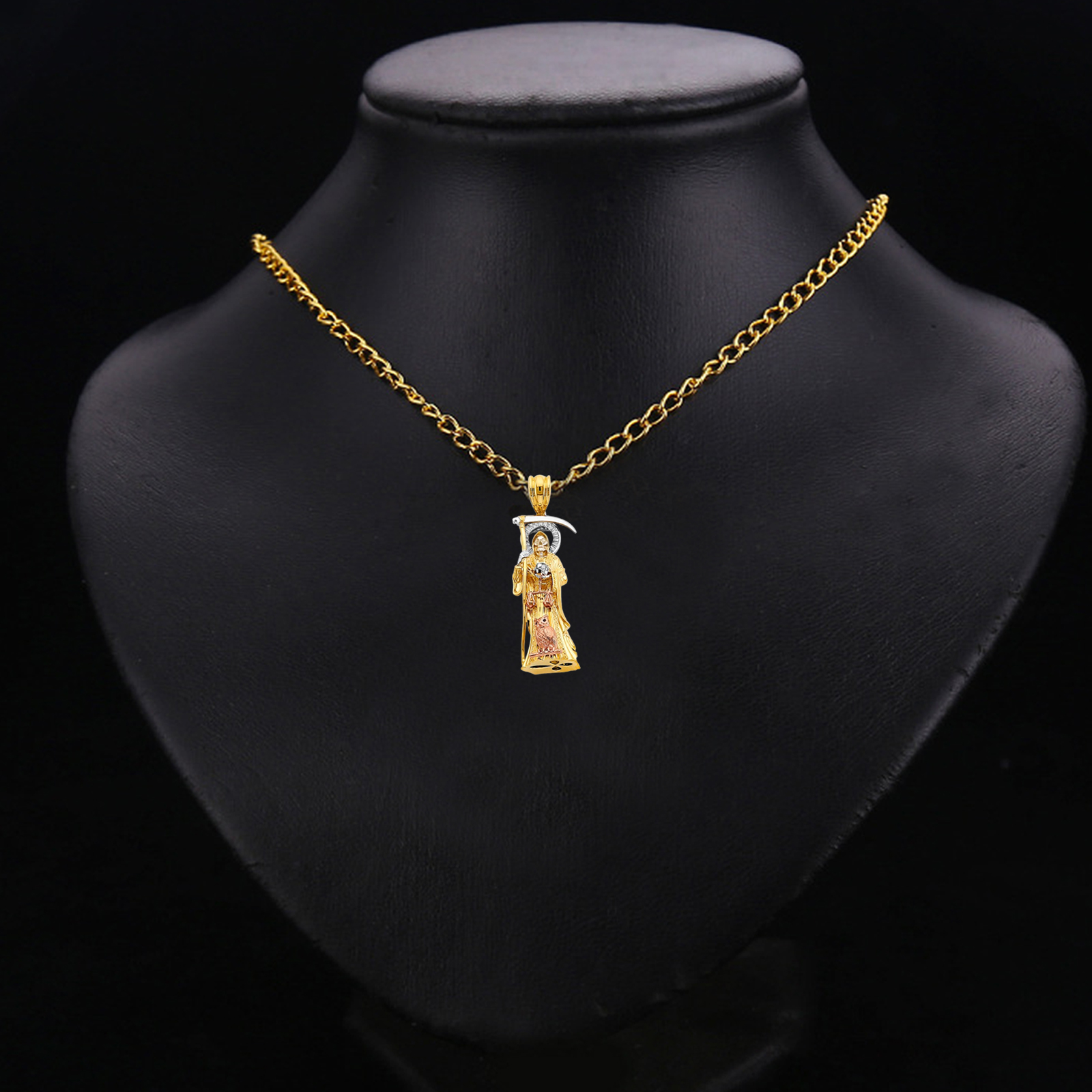 14K Tri Color Gold Cubic zirconia 3D Santa Muerte Pendant