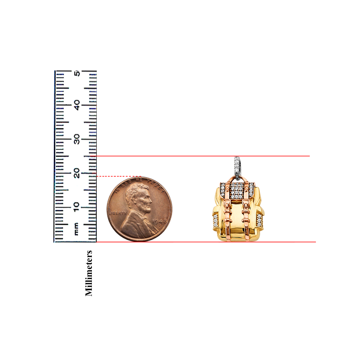 14K Tri Color Gold Cubic zirconia Bag Charm Pendant