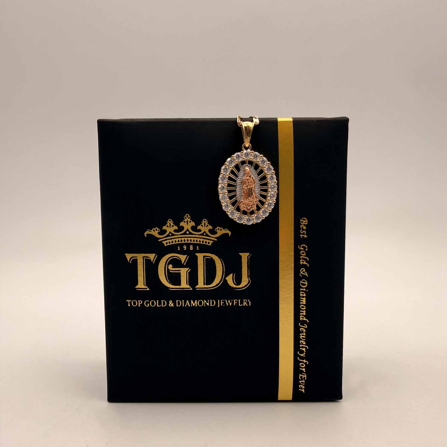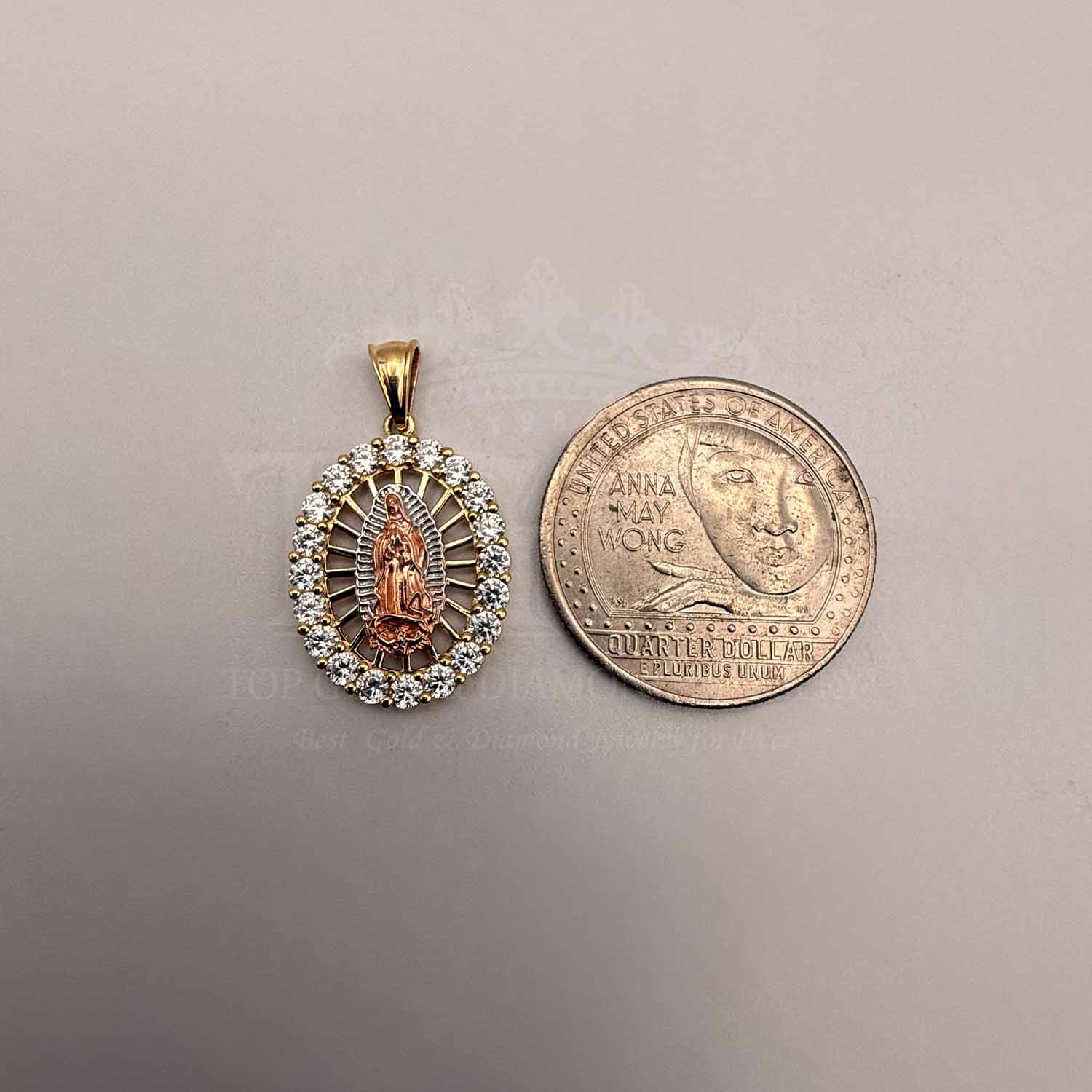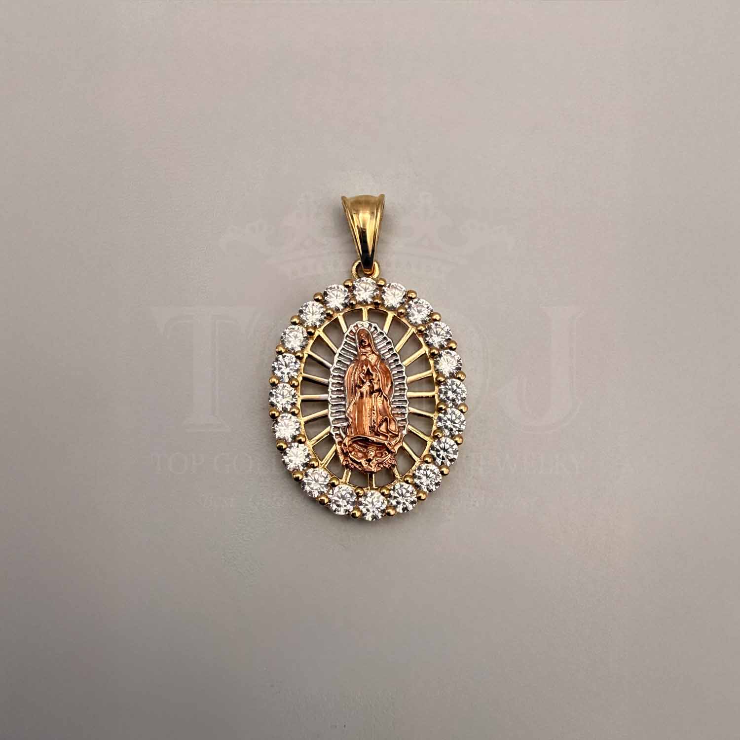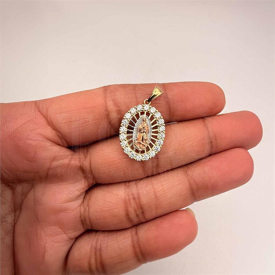 14K Tri Color Gold cubic zirconia Our Lady of Guadalupe Pendant