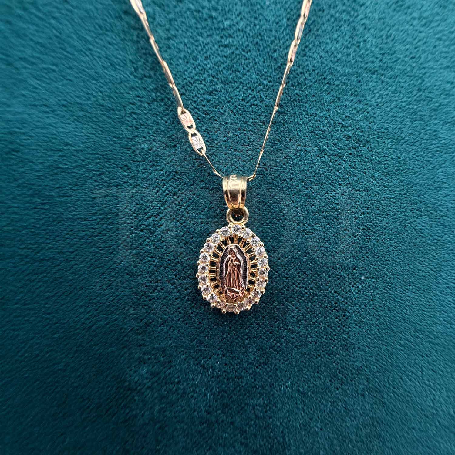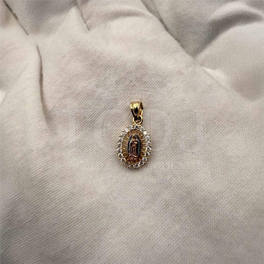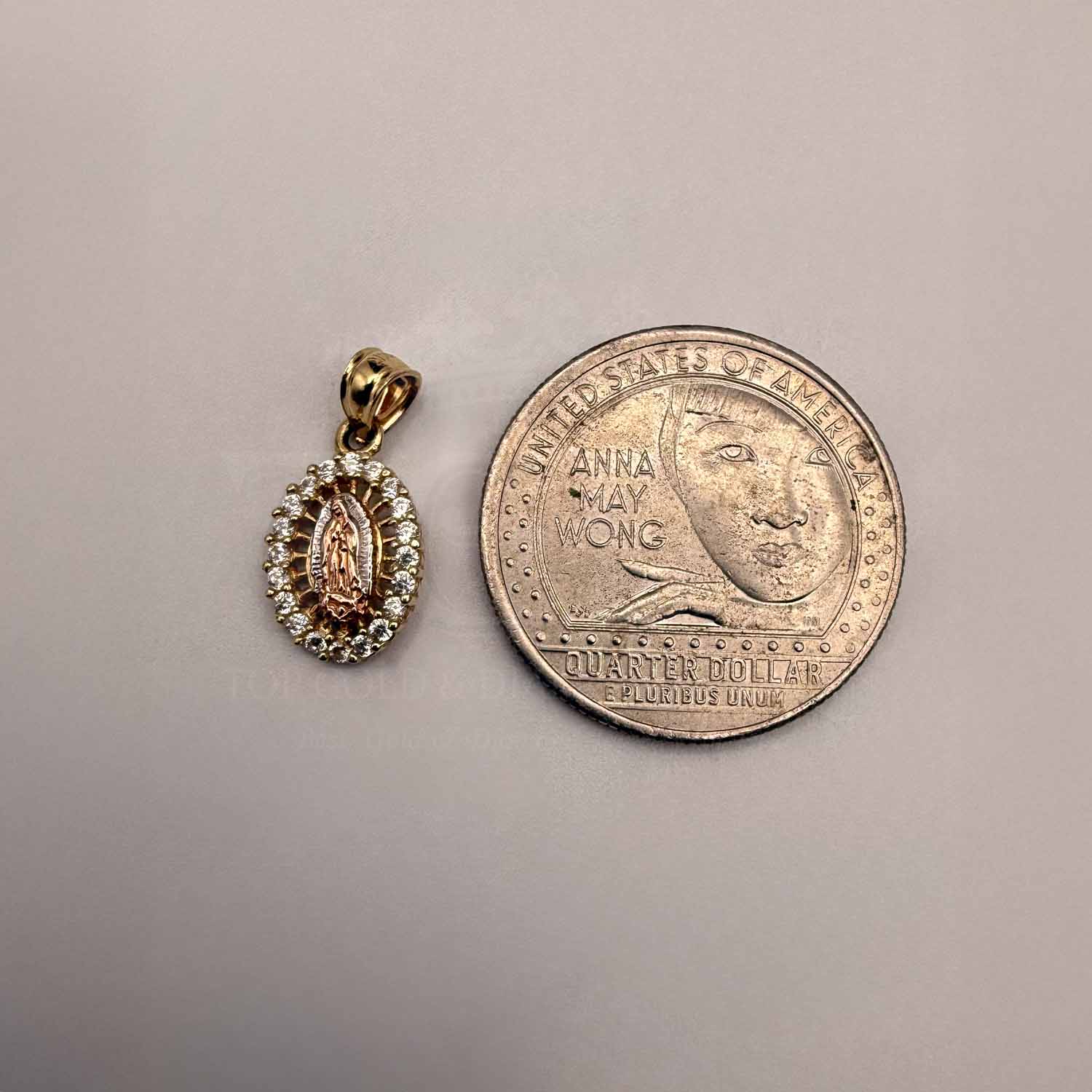 14K Tri Color Gold cubic zirconia Religious Stamp Pendant