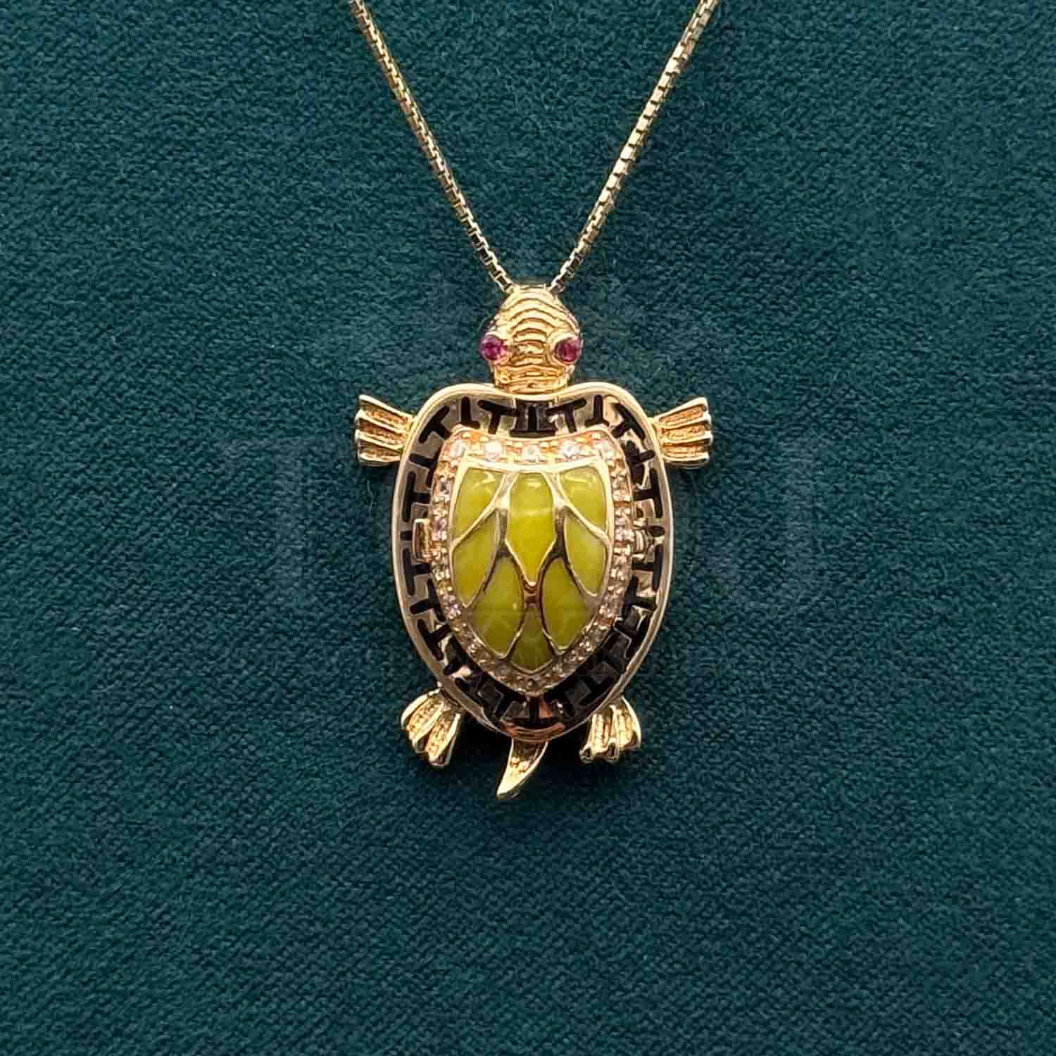 14K Tri Color Gold Cubic zirconia Turtle Pendant